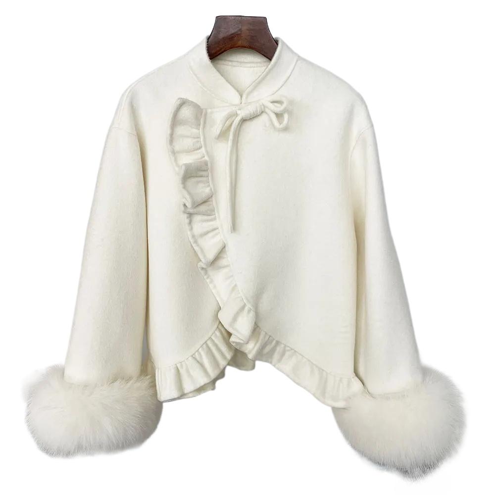 Роскошная зимняя модная короткая юбка из 100% двухсторонней шерсти, пальто из натурального меха лисы, рукава, женская теплая повседневная куртка — купить товар онлайн с бесплатной доставкой по всему миру!