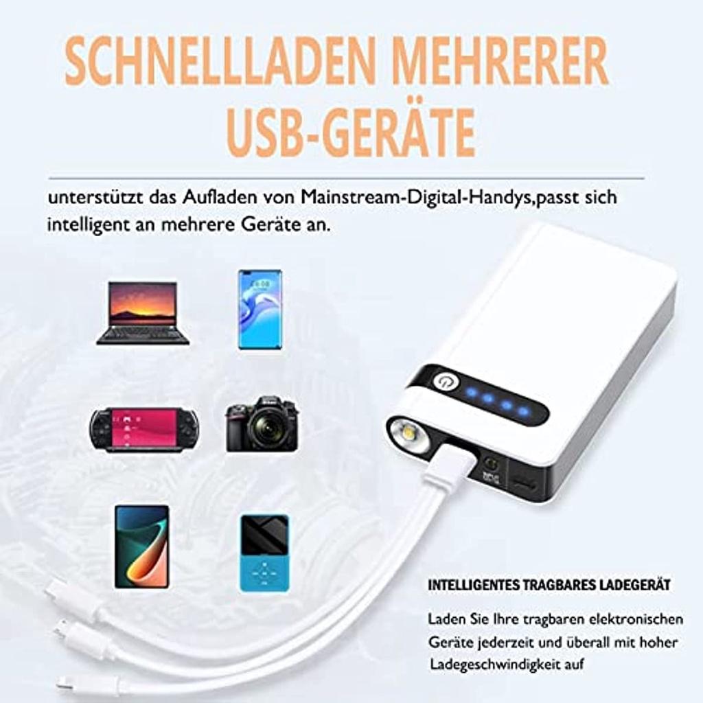 Power Bank 400 А, 20000 мАч, автомобильный аккумулятор, стартер, аккумулятор со светодиодной лампочкой, усилитель автомобильного стартера, с пусковыми проводами и сумкой для комплекта
