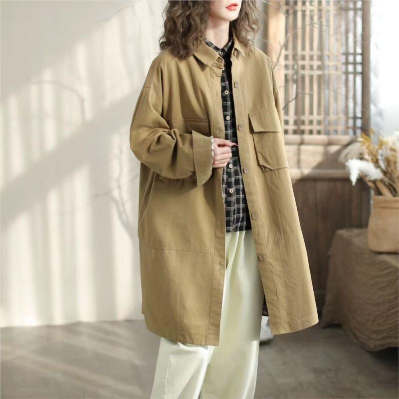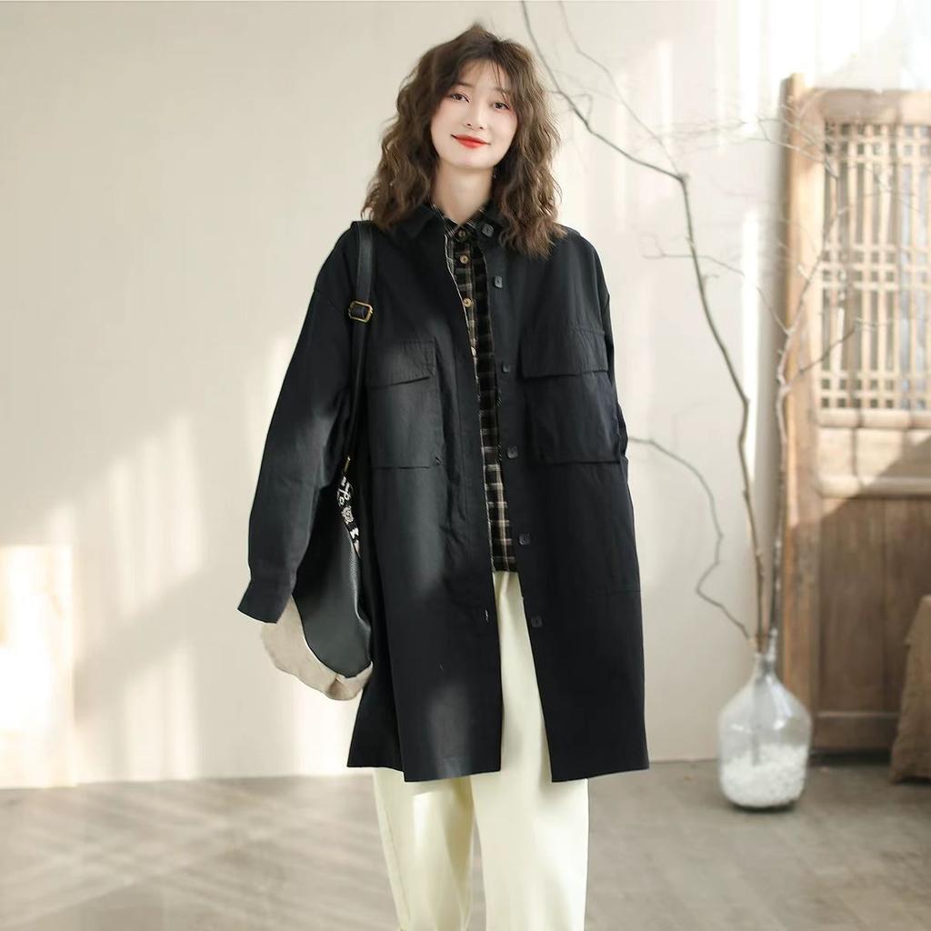 Johnature Повседневное свободное длинное рукава однобортное пальто женское осеннее однотонное пальто с отложным воротником