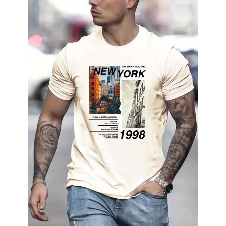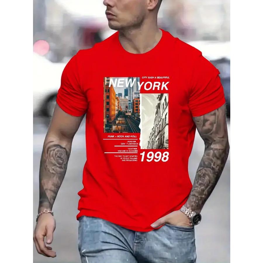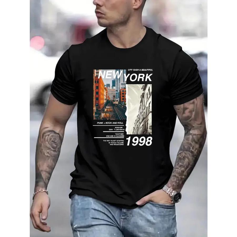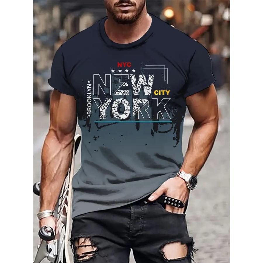 Мужская летняя футболка с графическим принтом и круглым вырезом - мягкая слегка эластичная полиэстеровая ткань, повседневная футболка с коротким рукавом для активного отдыха