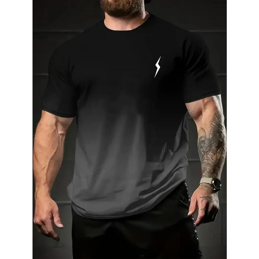 Летняя модная футболка с круглым вырезом и коротким рукавом - яркий графический принт Thunder, градиентный цвет, мягкая, повседневный топ для отдыха для мужчин — купить товар онлайн с бесплатной доставкой по всему миру!