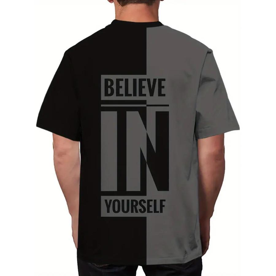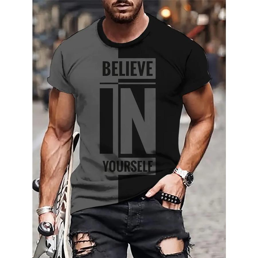 Футболка мужская с графическим принтом и круглым вырезом - мягкая, слегка эластичная, стандартного кроя, для активного отдыха, весна-осень