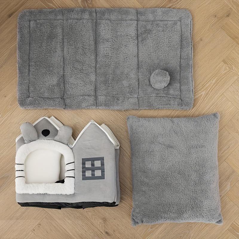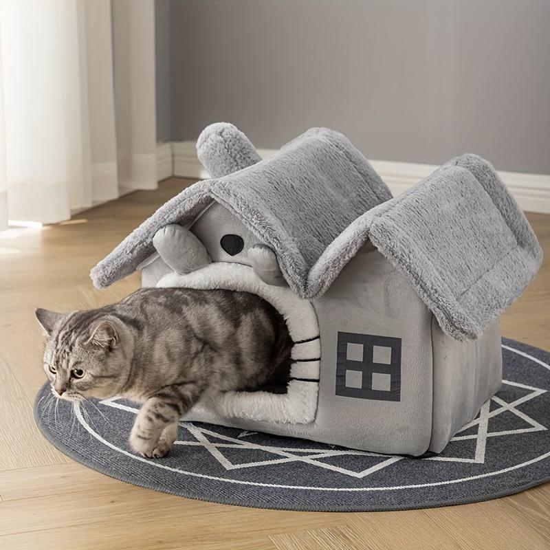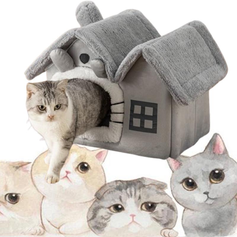 Кошачья кровать, домик для сна, теплая пещера, подушка, мягкая, закрытая палатка, хижины, диван для домашних животных, кошек, котят, домик