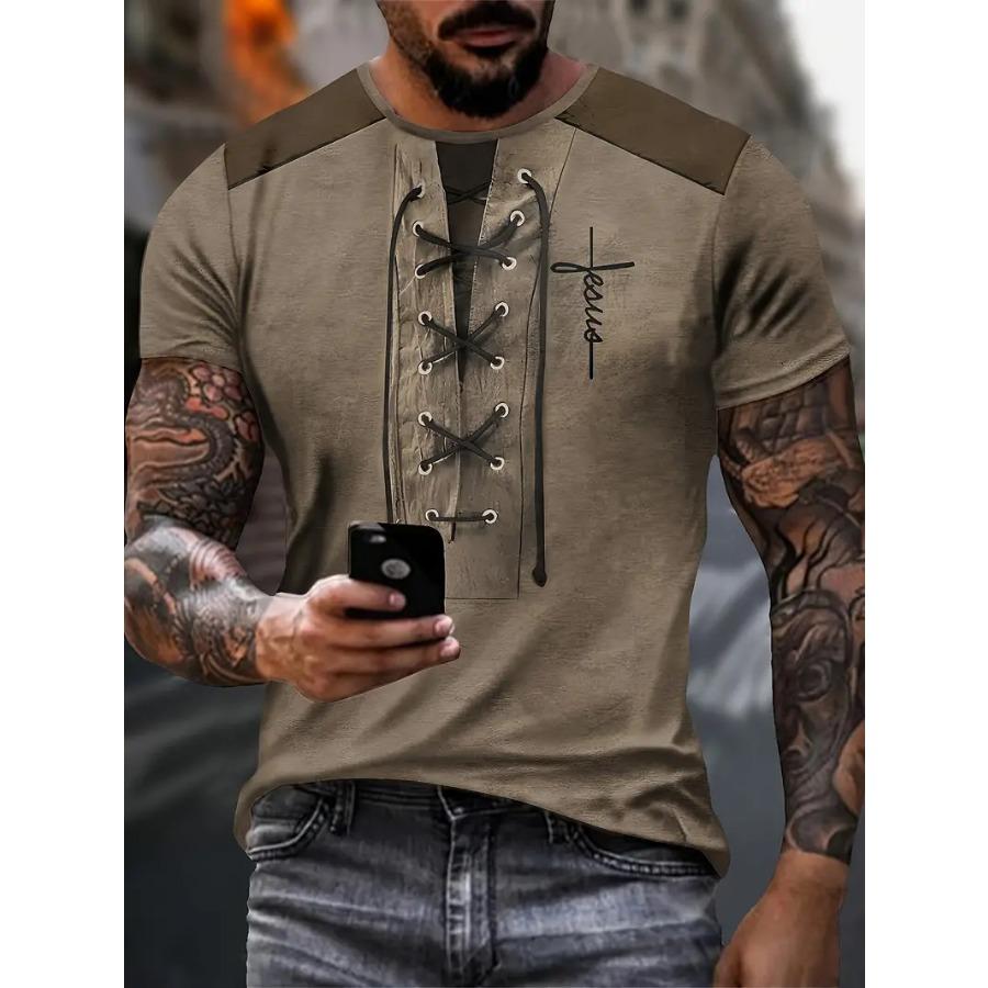 Летняя повседневная спортивная рубашка с коротким рукавом для мужчин - круглый вырез, слегка эластичная, полиэстер, принт, машинная стирка футболки