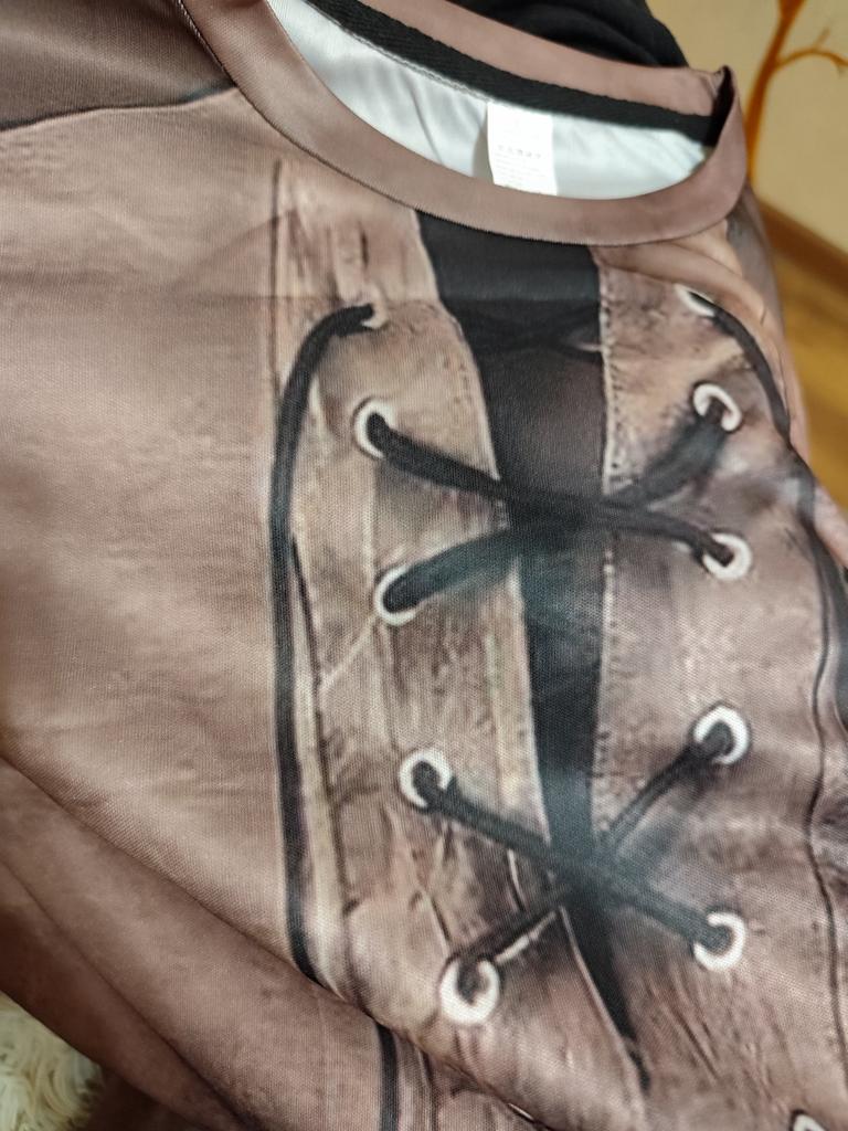 5XL - если не 60 размер, то на 58 размер точно подойдёт. Футболки из полиэстера очень боятся затяжек, да и катышки начинают появляться буквально через 2-3 месяца носки. Что касается качества печати рисунка. Посмотрите на фото в карточке товара- в реальности будет что-то примерно похожее, но без четкости рисунка, без резкости, с сизым оттенком. Как будто производителю прислали картинку по ватсапу, ( я думаю все знают, что ватсап сильно режет качество передаваемых картинок, фото) он её увеличил и напечатал на древнем оборудовании.