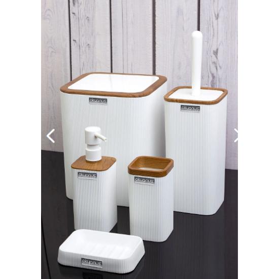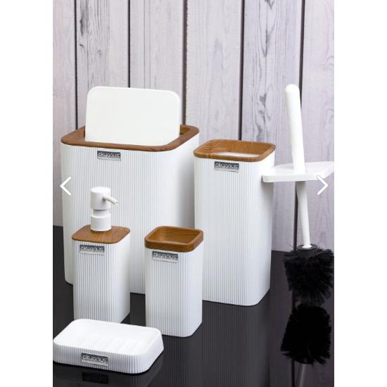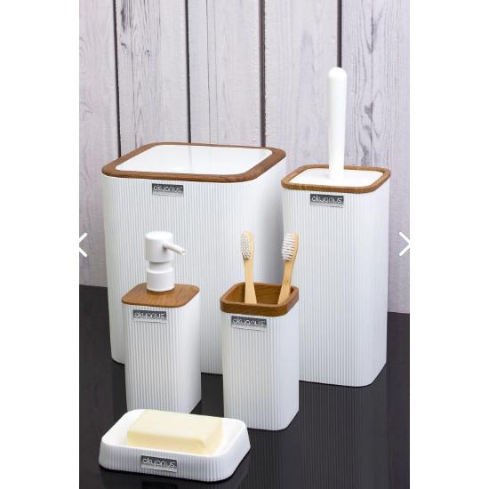 Mina Белый деревянный узорчатый квадратный набор для ванной комнаты из 5 предметов в полоску