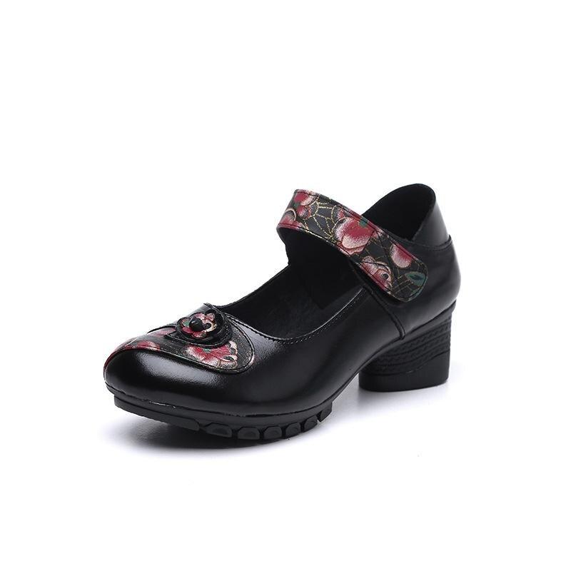 Ретро туфли-лодочки Женская обувь Натуральная кожа Hook & Loop Ручная работа Лаконичные женские туфли