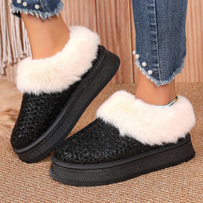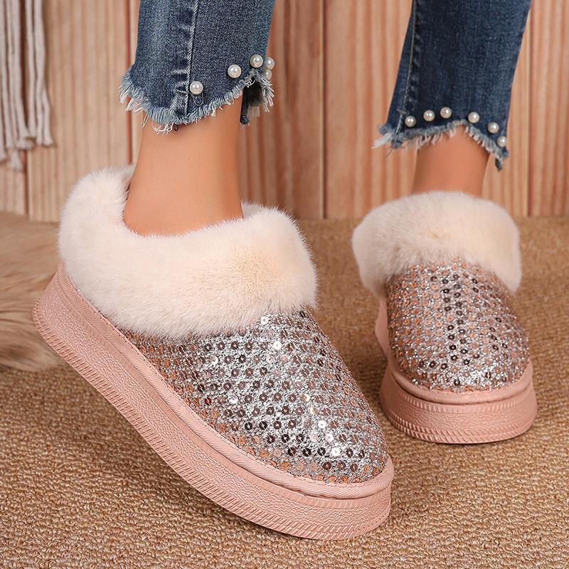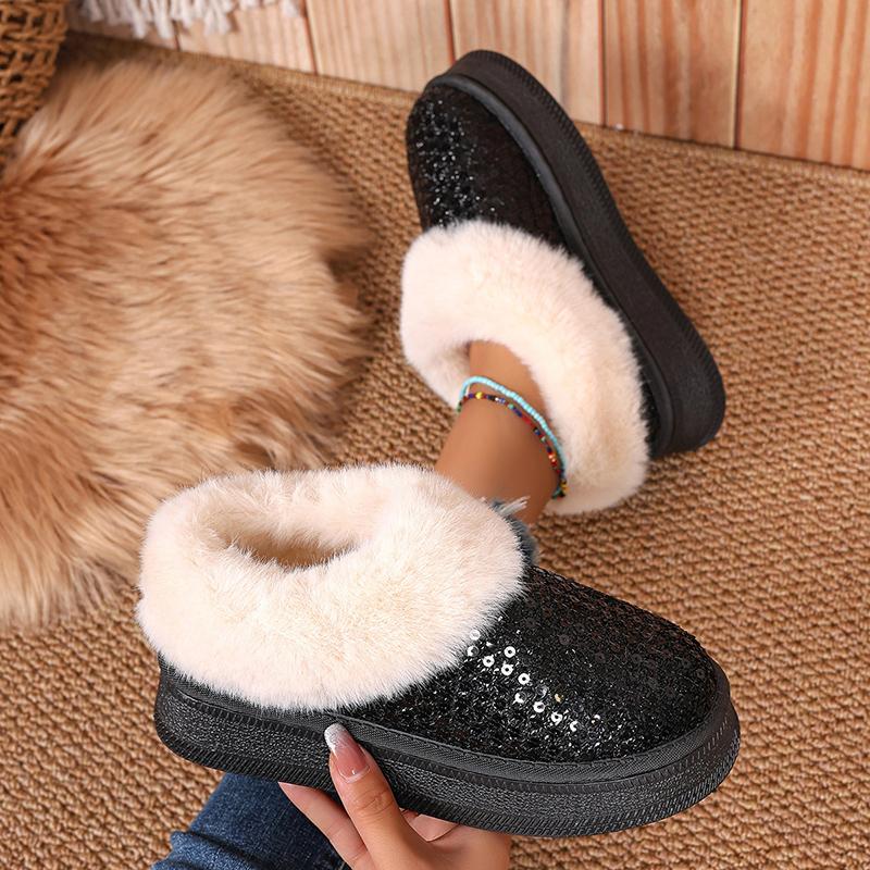Модные серебристые пайетки утолщенные ботильоны на платформе женские полусапожки теплые зимние сапоги зимние горячие пушистые сапоги с толстой подошвой