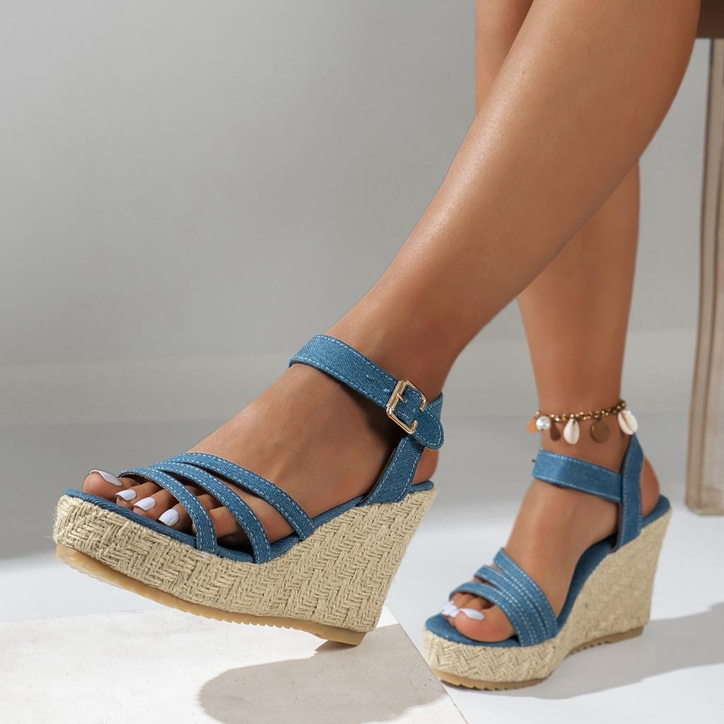 Модные женские сандалии на плетеной высокой танкетке, сандалии с пряжкой, ремешком, толстой подошвой, на платформе, удобные нескользящие женские туфли Zapatos