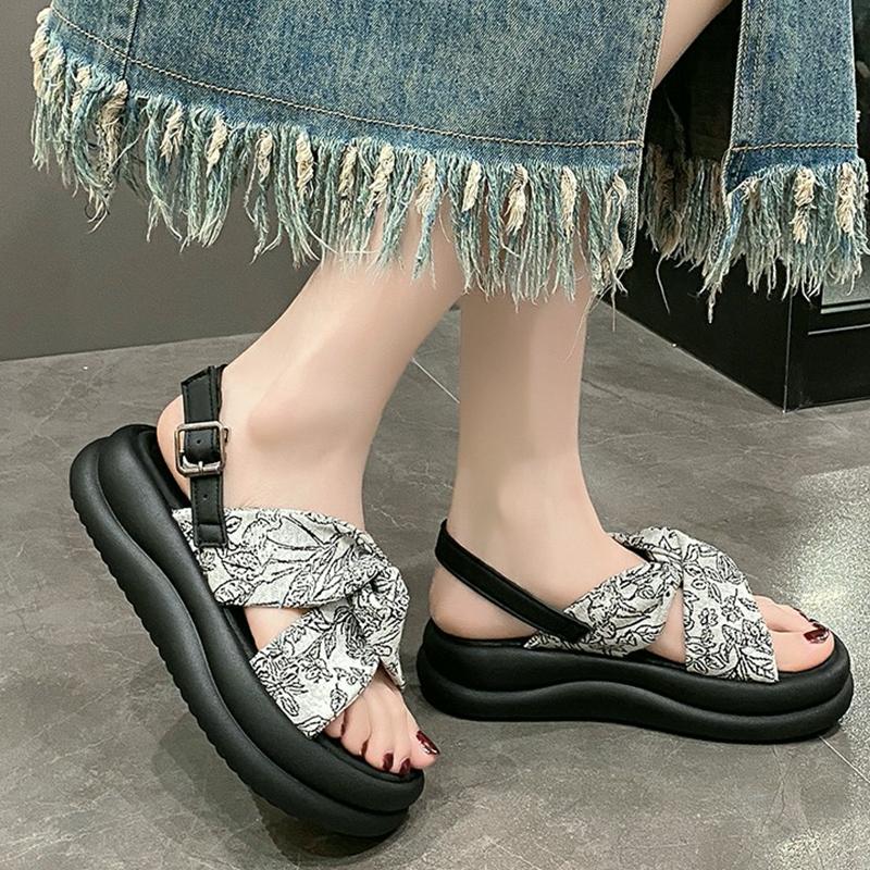Модные элегантные сандалии с принтом для женщин с толстым дном и платформой, сандалии с пряжкой и ремешком, легкие мягкие нескользящие туфли — купить товар онлайн с бесплатной доставкой по всему миру!