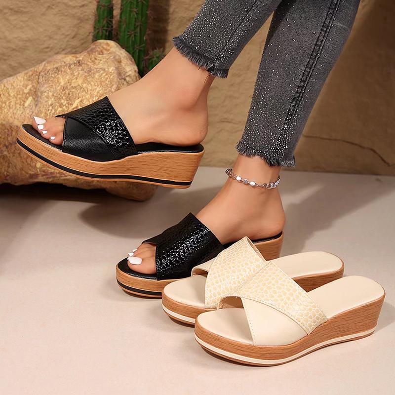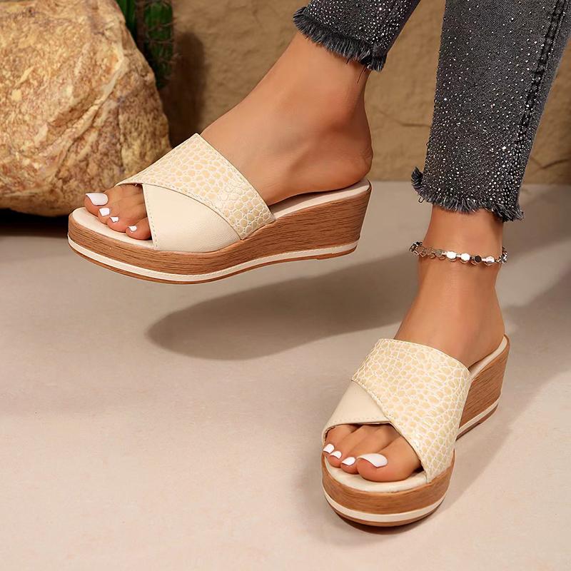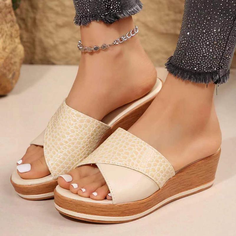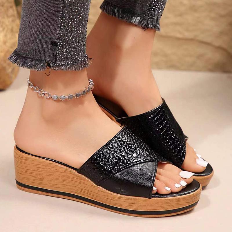 Модные женские тапочки Rimocy из искусственной кожи на танкетке, лето 2024, новые босоножки на платформе с открытым носком, женские удобные нескользящие пляжные шлепанцы
