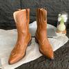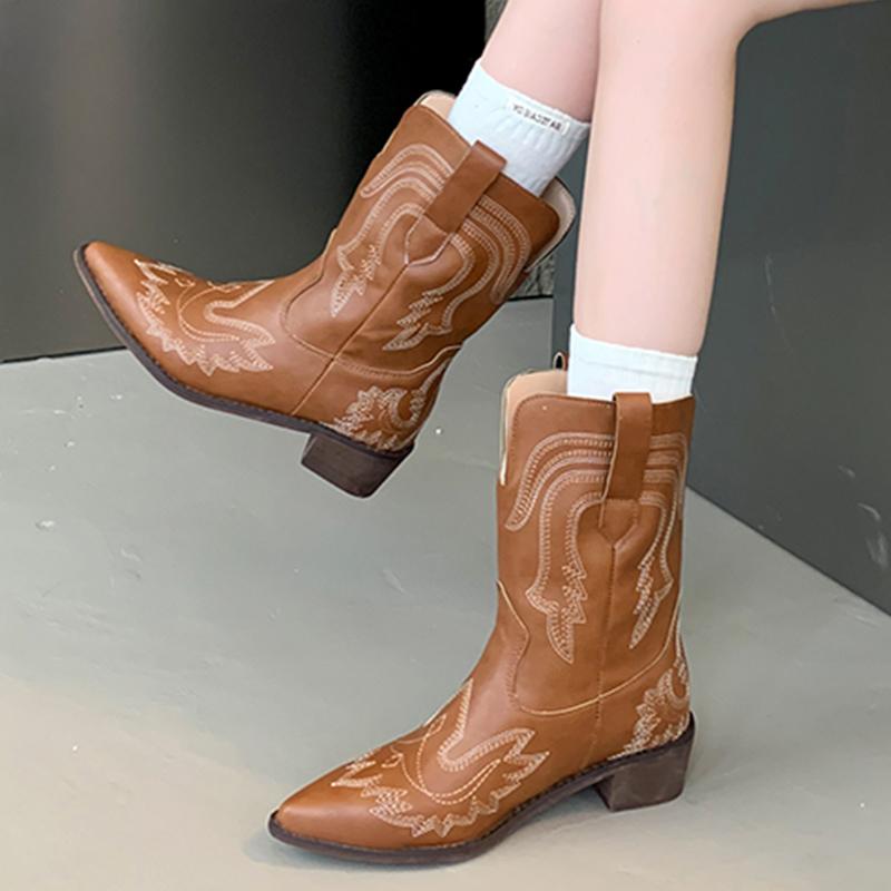 Мода осень зима 2024 ковбойские сапоги в стиле вестерн женские сапоги с вышивкой мотоциклетные сапоги из искусственной кожи до середины голени 35-40