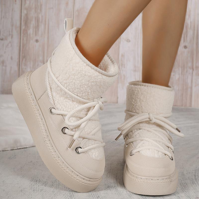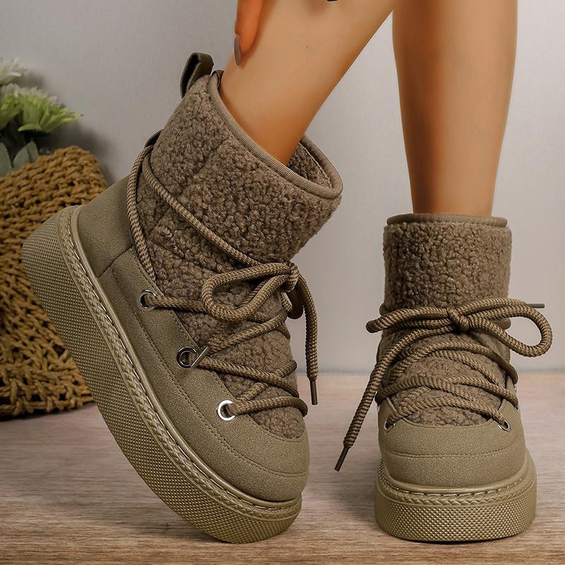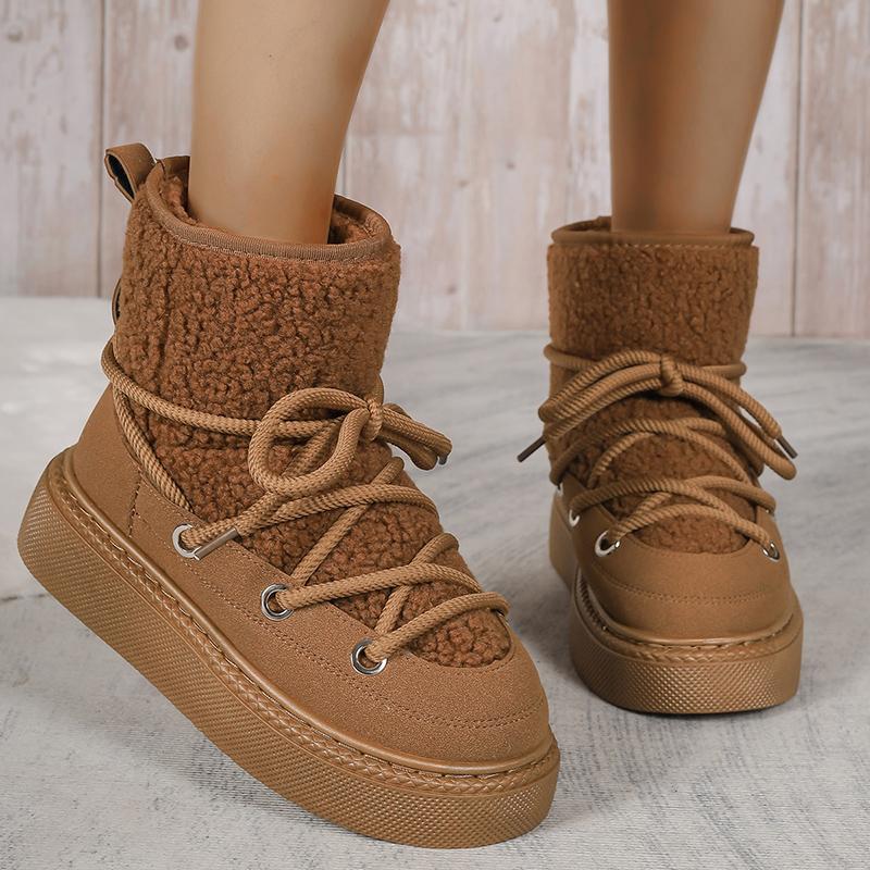 Модные женские зимние ботинки из искусственной замши 2024 года, зимние теплые лыжные ботинки со шнуровкой, короткие ботинки на платформе из синтетической шерсти для отдыха