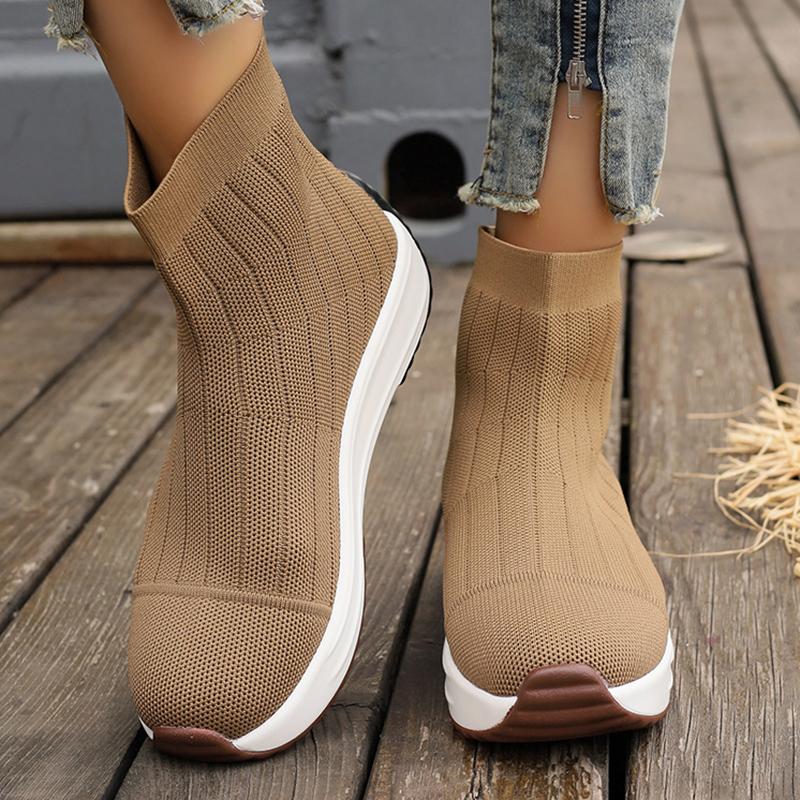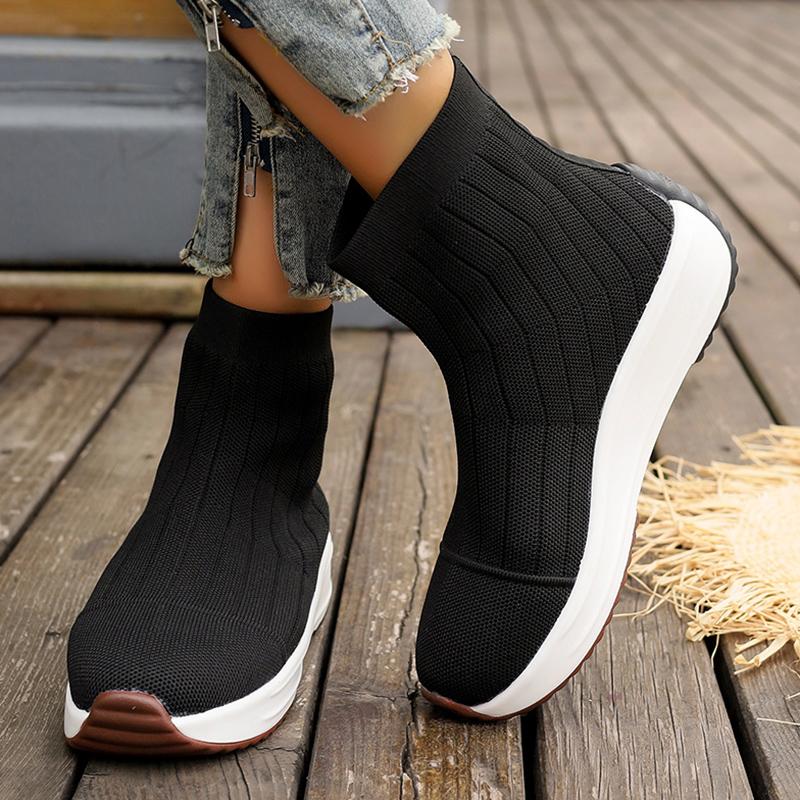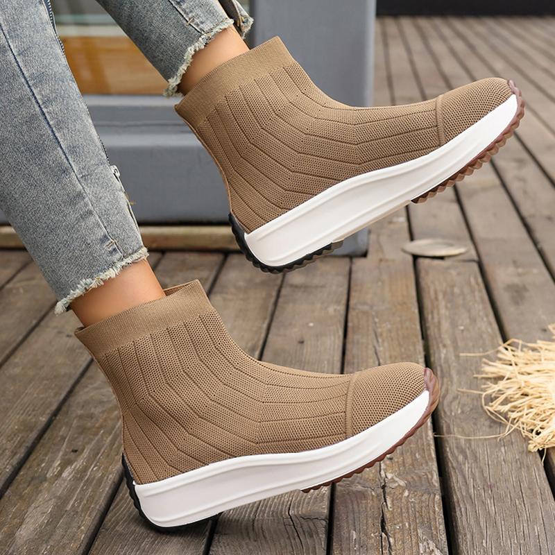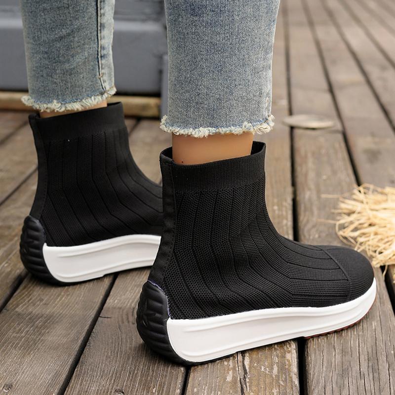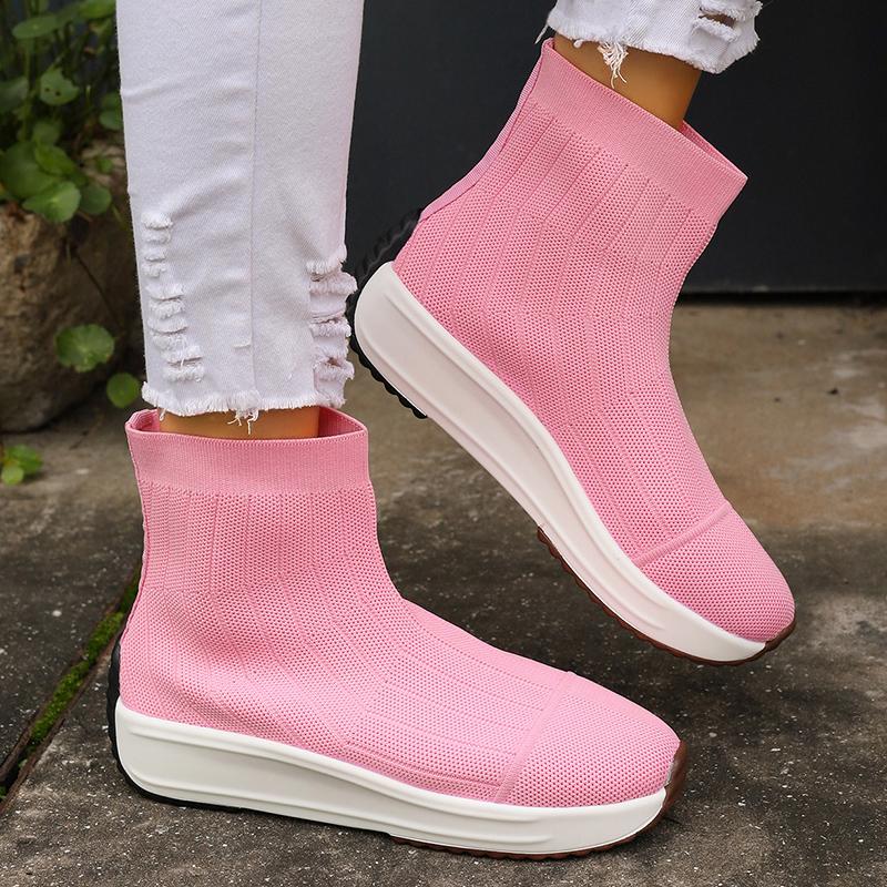 Модные розовые вязаные ботильоны на толстой подошве, женские нескользящие короткие ботинки на платформе, женские повседневные туфли Slip-On Vulcanize 2024 года