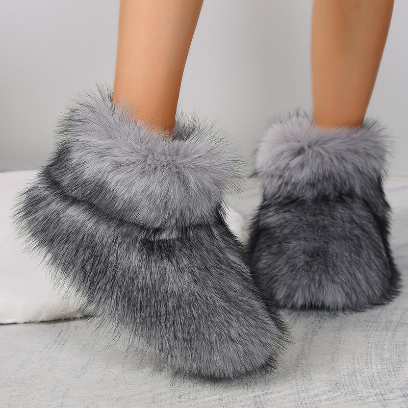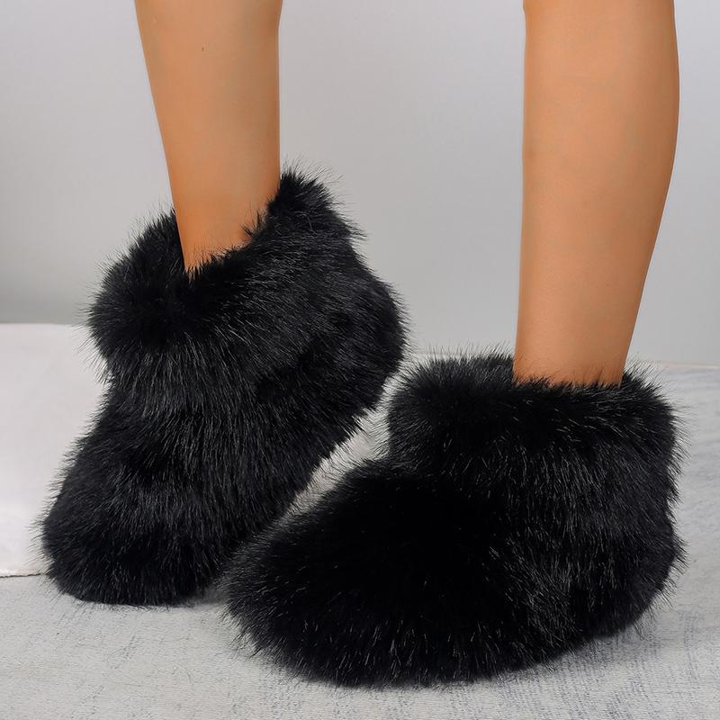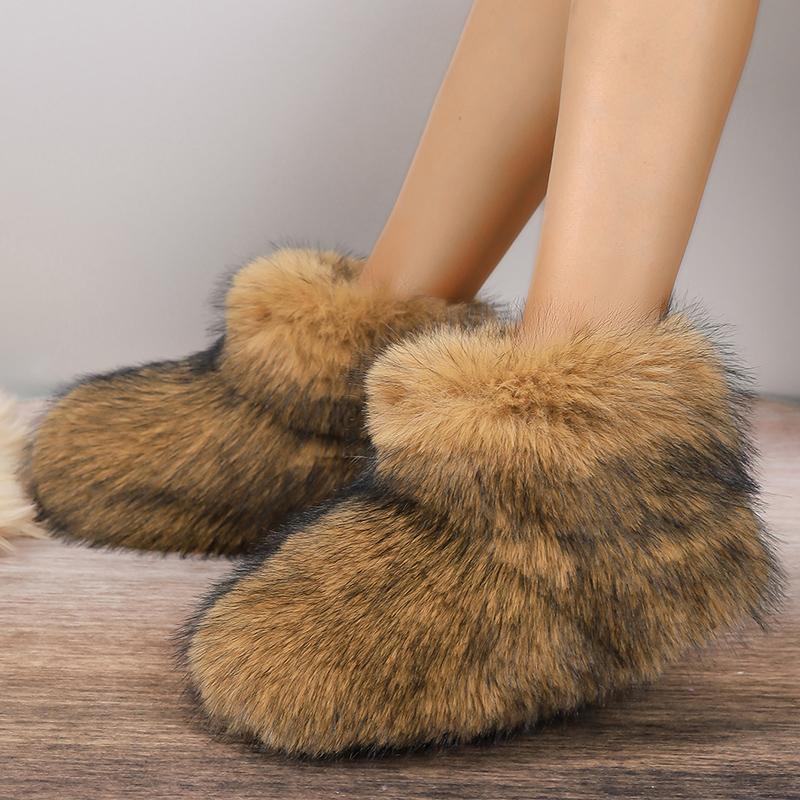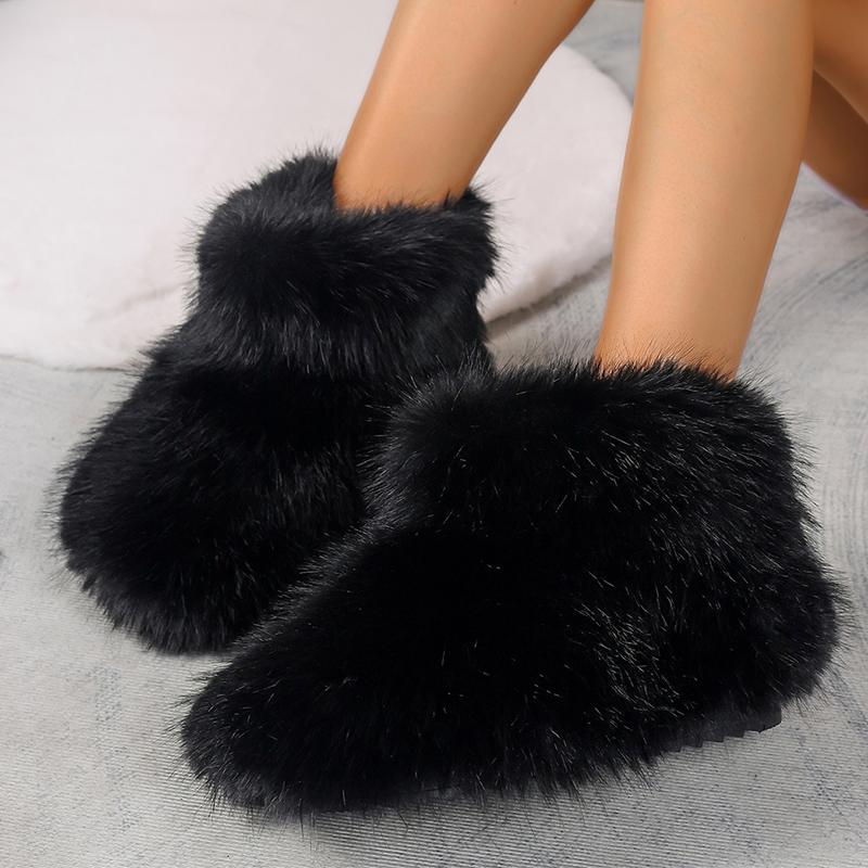 Модные женские пушистые плюшевые теплые ботильоны на осень-зиму, нескользящие зимние ботинки, повседневные, большой размер 44, короткие ботинки из искусственного меха для женщин