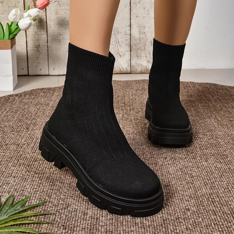 Мода Женская обувь Эластичная ткань Носок Ботильоны Комфорт Большие размеры Обувь Женские сапоги до середины голени Досуг De Mujer Женские сапоги на платформе