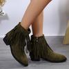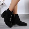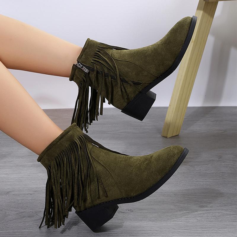 Модные женские сапоги для винтажной ковбойской девушки с кисточками, замшевые, кожаные, с острым носком, большого размера, женские сапоги, зимние, на толстом каблуке, с молнией, в стиле вестерн