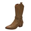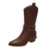Мода 2024 года. Новые сапоги в стиле ретро из искусственной кожи. Женские сапоги до середины голени с пряжкой на ремне и заклепками. Ковбойские сапоги в стиле панк на высоком квадратном каблуке.