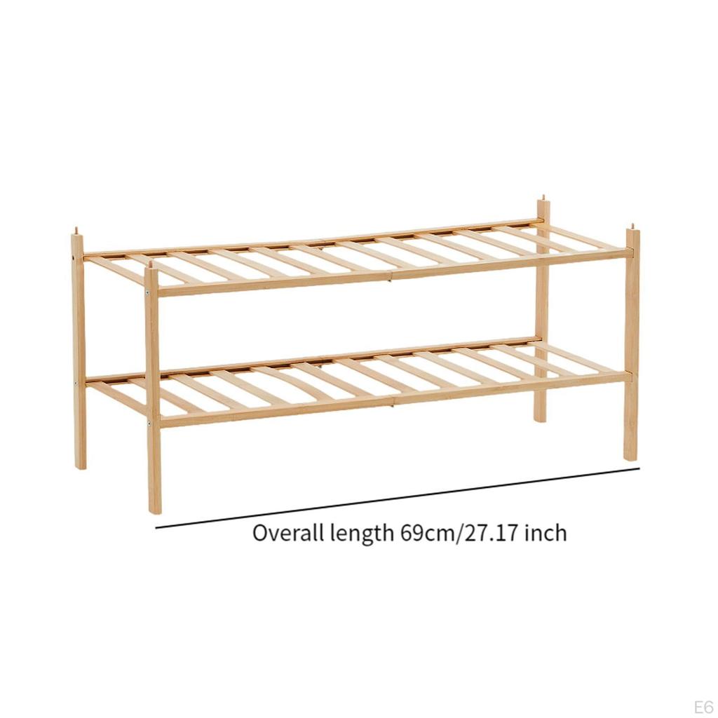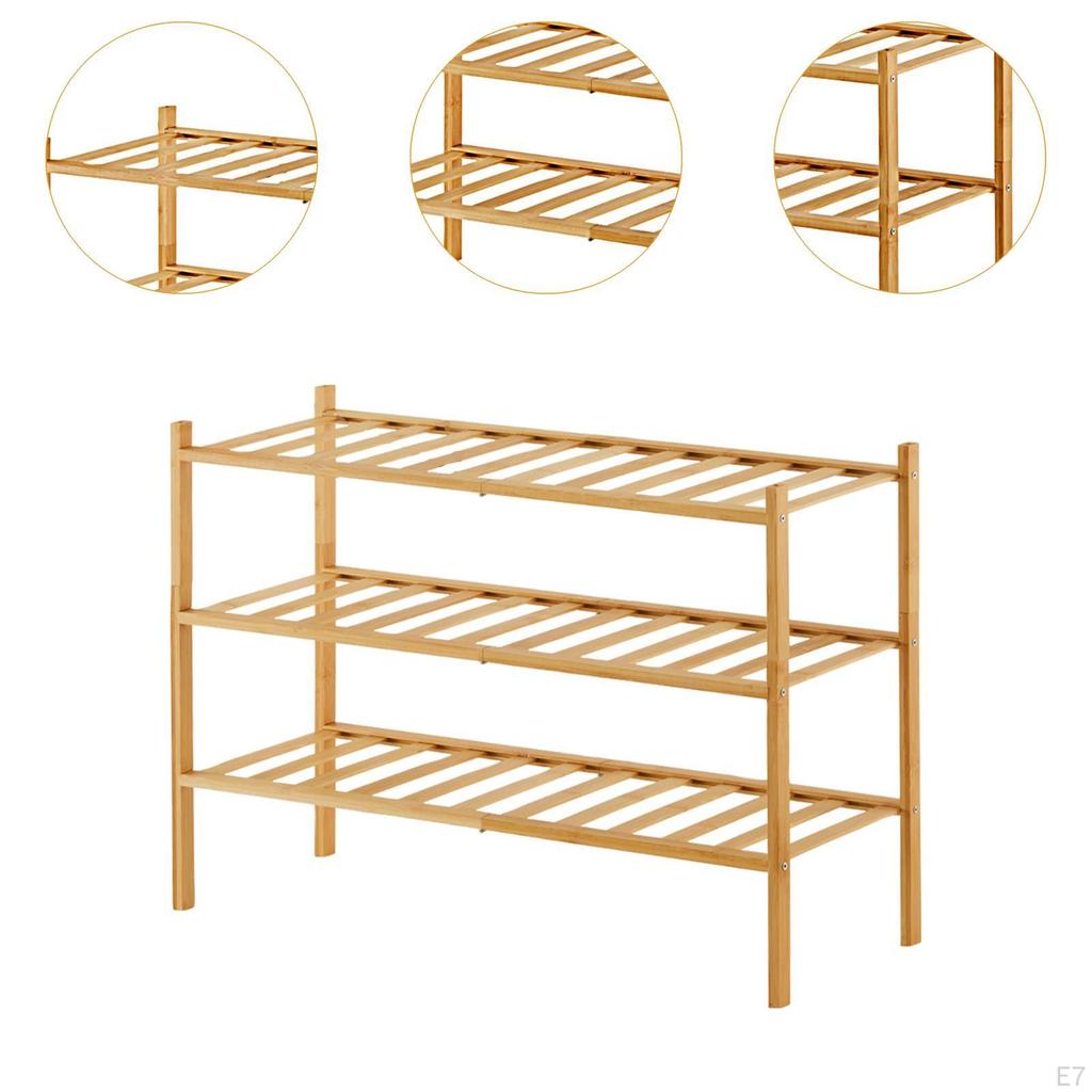 - 【Материал】Эта полка для обуви изготовлена из прочного бамбука и прослужит долгое время.. Он может вмещать несколько пар обуви, не сгибая и не деформируя ее, гарантируя безопасное хранение и легкий доступ к ней при необходимости.