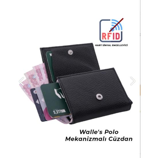 Темный кожаный кошелек унисекс с автоматическим механизмом, защитой от радиочастотной идентификации и застежкой-кнопкой, с отделением для денег и карт