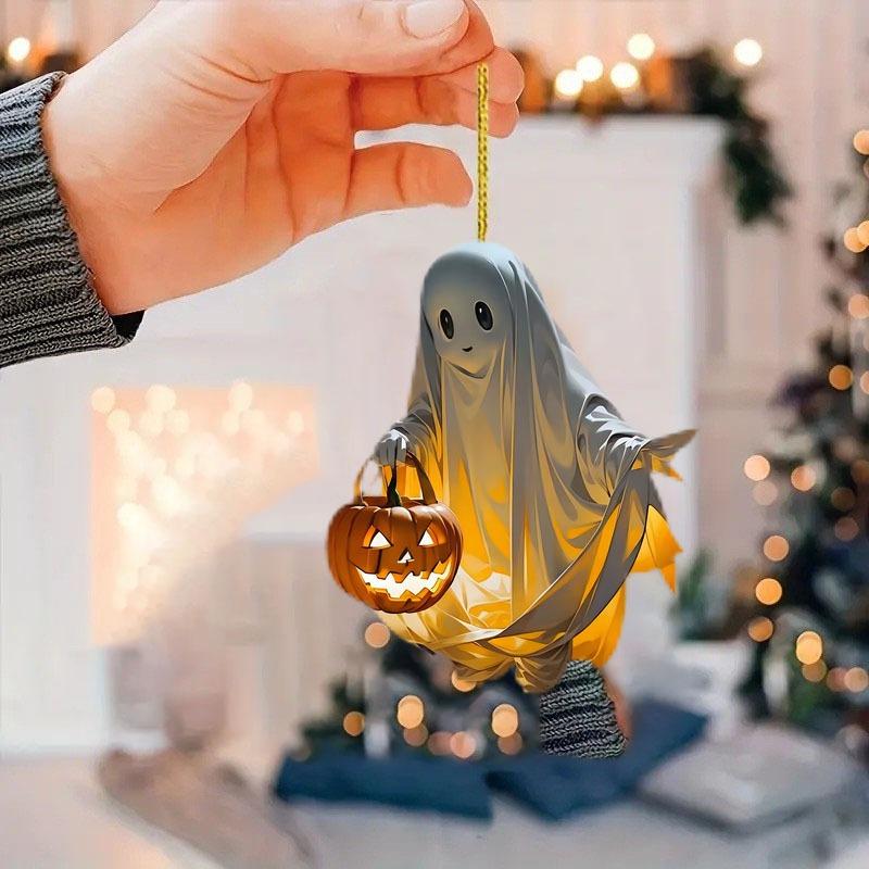 Новый акриловый плоский 2D Хэллоуин тыква эльф милый призрак привидение зеркало заднего вида автомобиля кулон рюкзак дверная ручка кулон