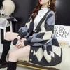 Элегантный модный вязаный свитер с узором «Аргайл», женская осенняя новая зимняя свободная женская кардиганная кофта с длинным рукавом, винтажное трикотажное пальто больших размеров 24929
