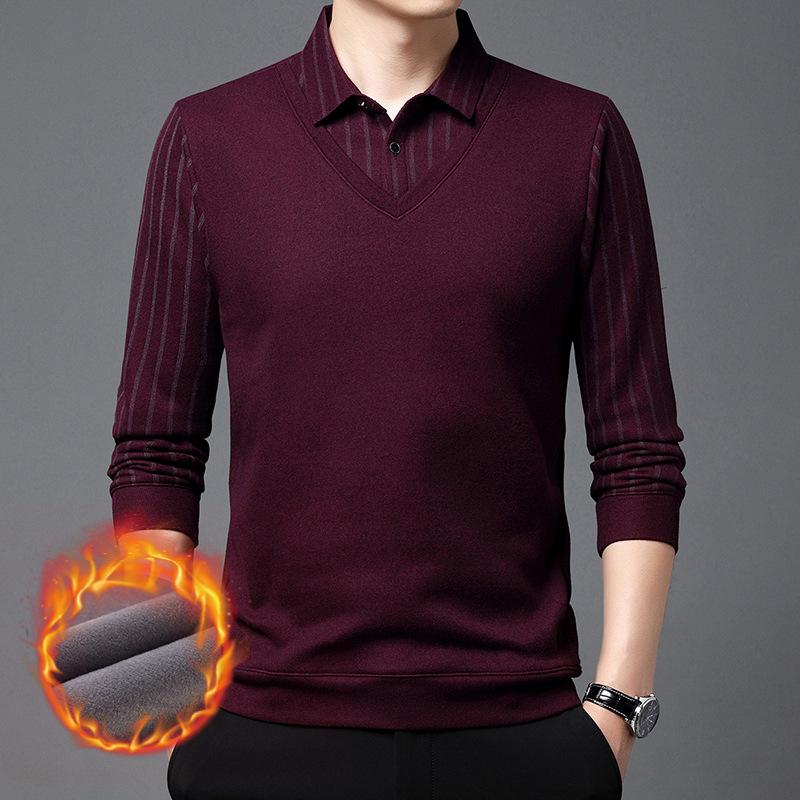 Мужская рубашка-поло из двух частей для отдыха среднего возраста, зимняя, для папы, плюс утолщенная теплая рубашка из бархата, вязаный шерстяной свитер