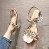 Летние женские сандалии из ПВХ с кристаллами и цветочным декором, элегантная модная женская обувь на массивном каблуке с открытым носком и эластичной лентой сзади