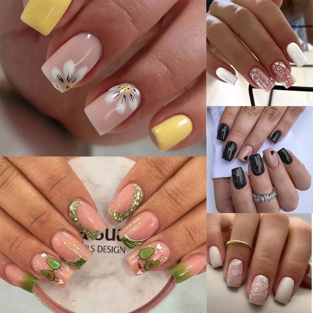 Длинные квадратные накладные ногти Френч-пресс на ногтях Модные накладные ногти для женщин и девочек