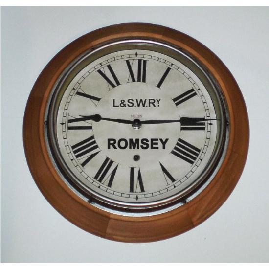 Красивые современные часы в стиле эпохи Лондонской Юго-Западной железной дороги с изображением станции Ромси.