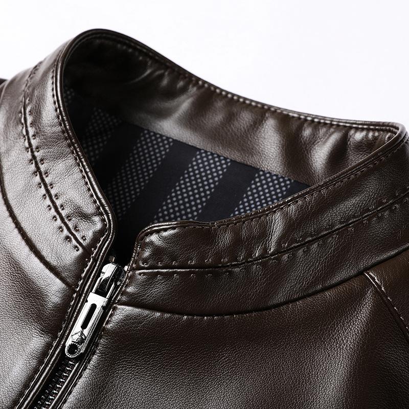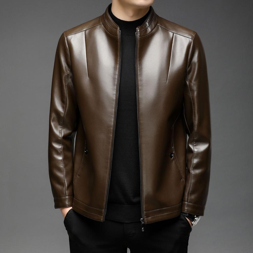 Мужская кожаная куртка с воротником-стойкой, модная, простая, деловая, повседневная, кожаная куртка, мужская, осенне-зимняя, новая кожаная куртка