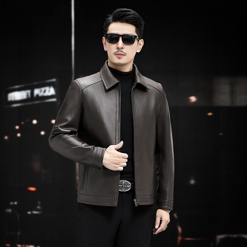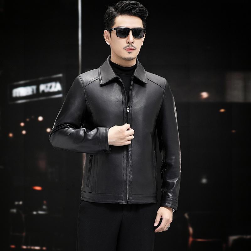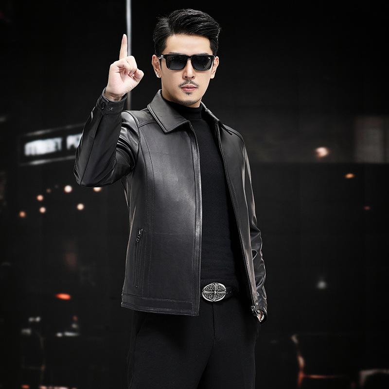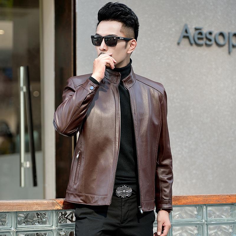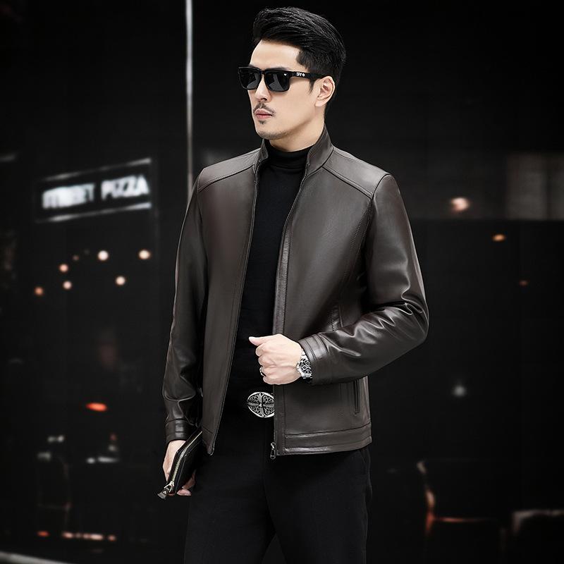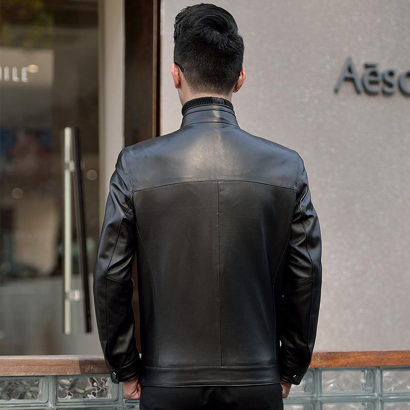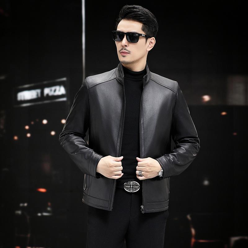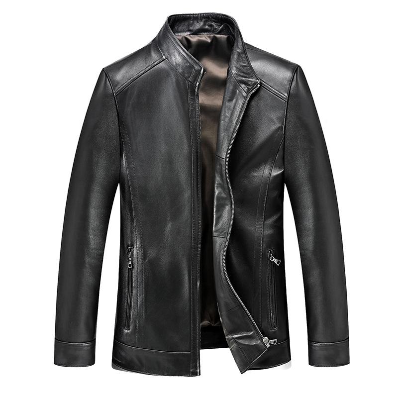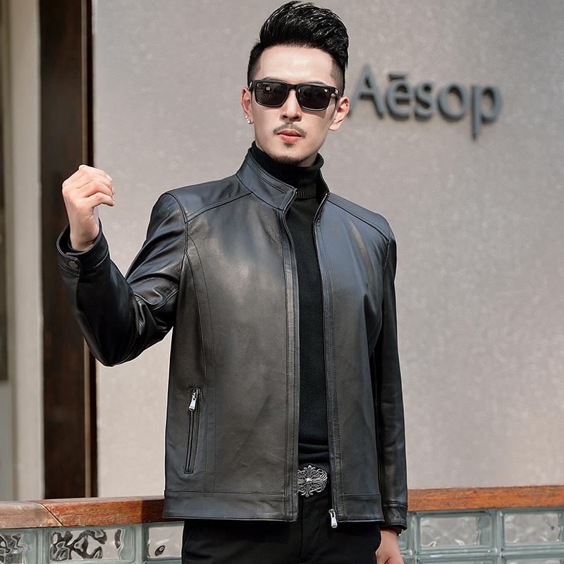 Мужская куртка из натуральной кожи, куртка из овчины, воротник-стойка, деловая, повседневная, для папы, осенняя, новая кожаная куртка