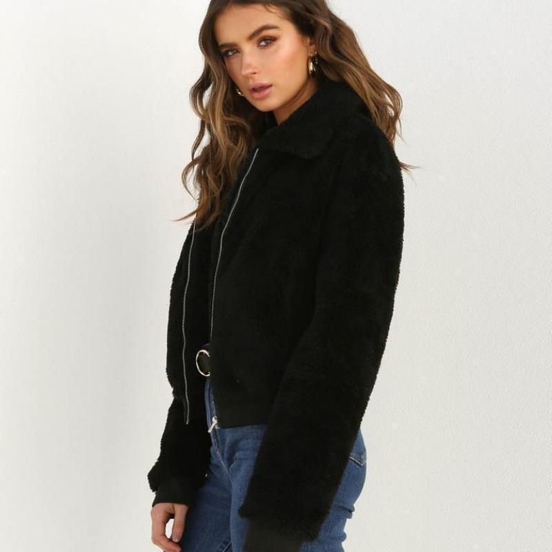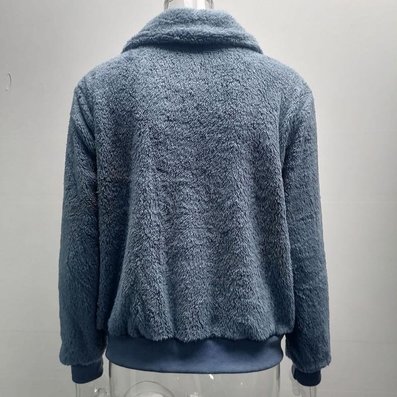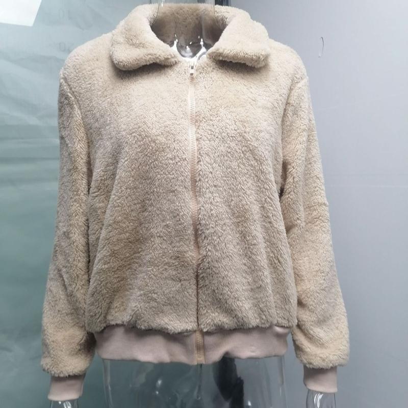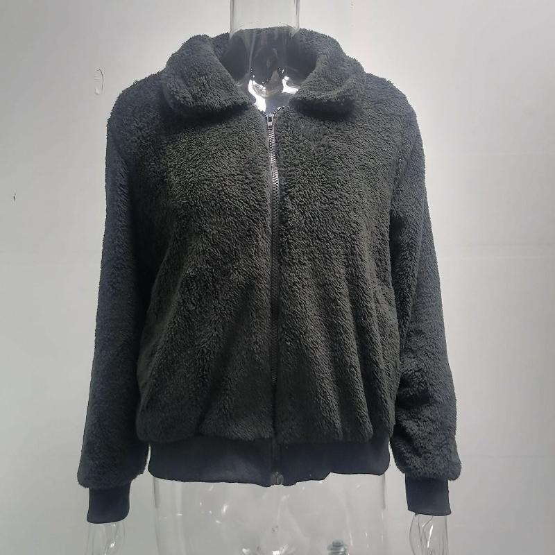 Модная плюшевая женская осенняя куртка с длинным рукавом, свободные теплые бархатные шерстяные пальто, женские зимние однотонные повседневные мягкие верхние куртки больших размеров для женщин 24964