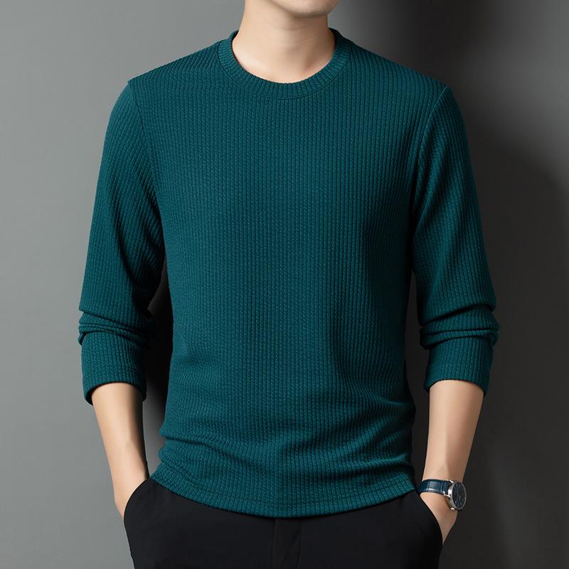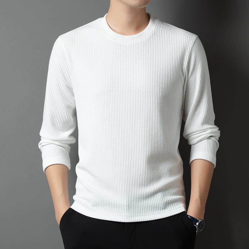 Осень и Зима Мужской Новый Стиль Вертикальный Узор Круглый Вырез Толстовка Модная Повседневная Пуловер Базовая Футболка Топ