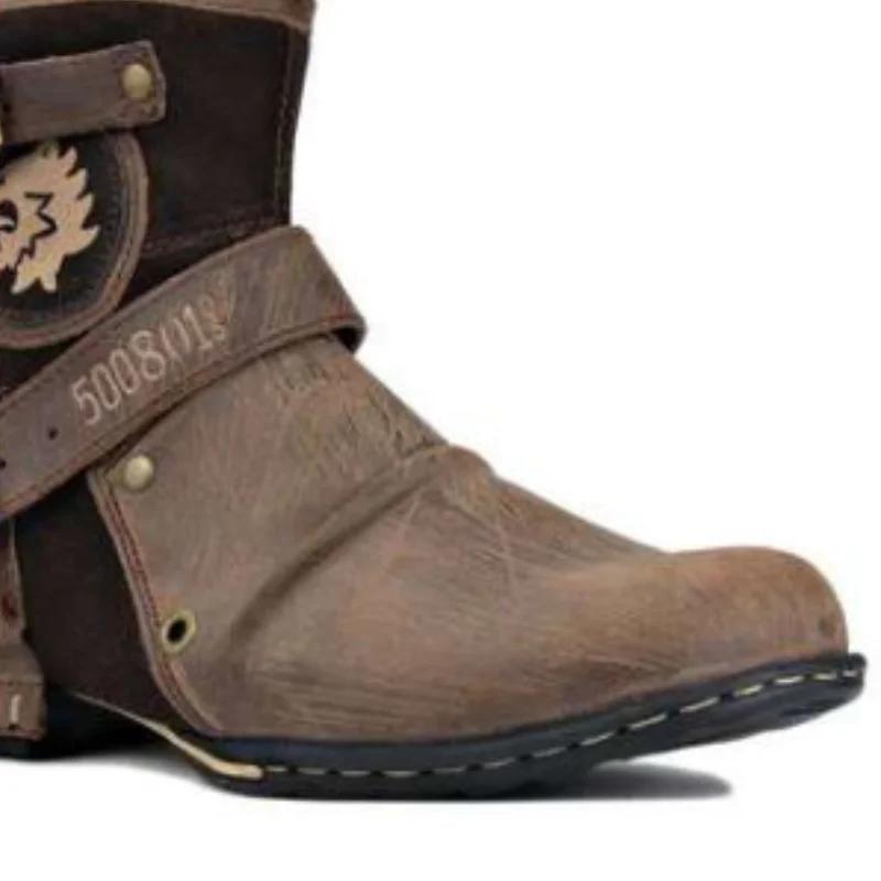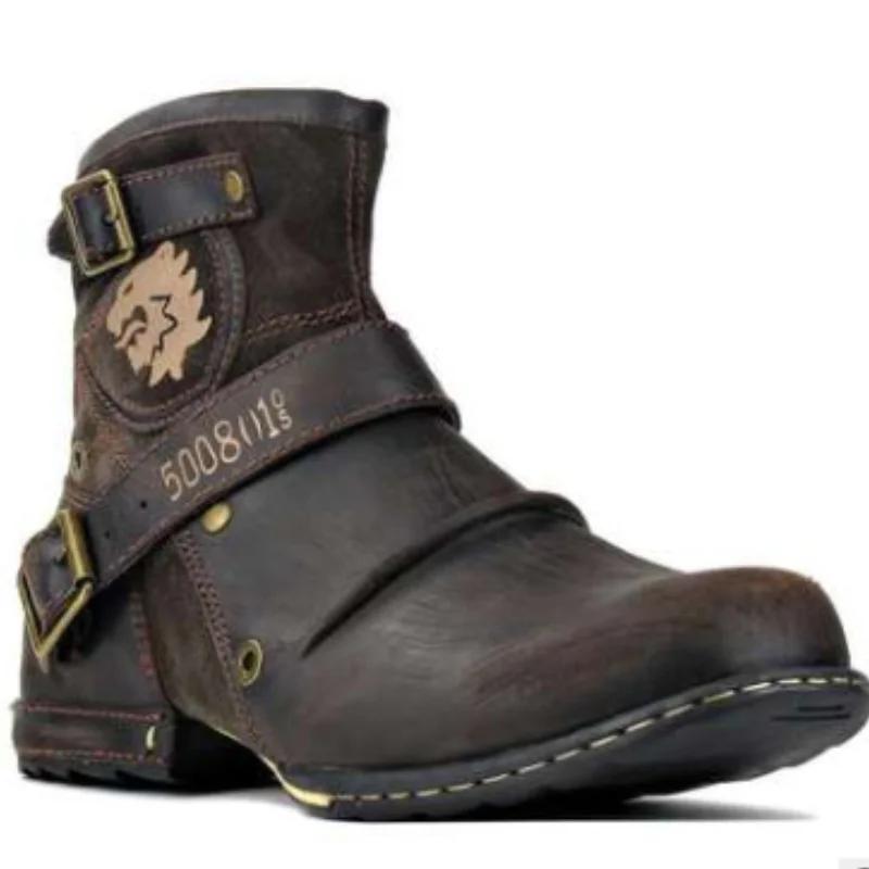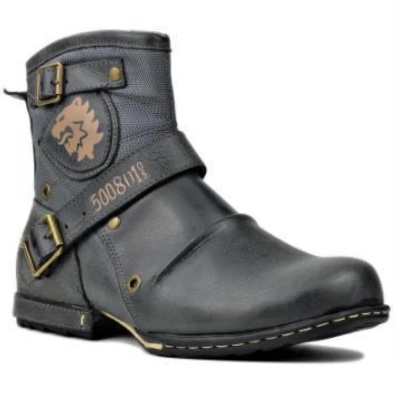 Новые мужские кожаные ботинки в европейском и американском стиле с круглым носком, мужская обувь, мужские ботинки больших размеров 2024 г.