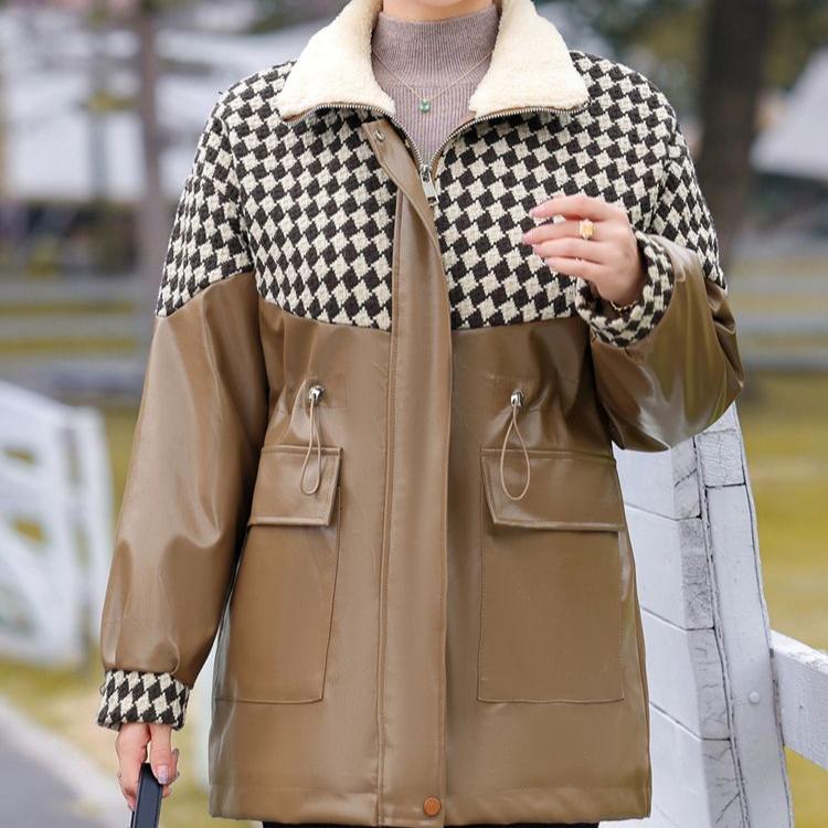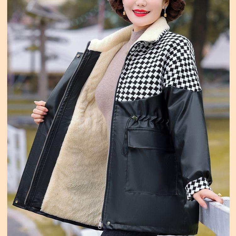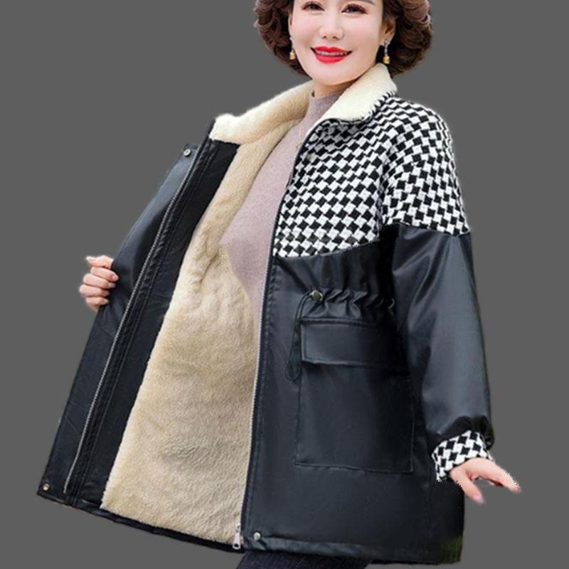 Женская флисовая кожаная куртка большого размера, парка из искусственной кожи, зимняя свободная кожаная байкерская куртка, толстое флокированное кожаное пальто