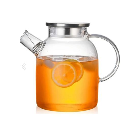 Термостойкий стеклянный кувшин для заварки травяного чая емкостью 1800 мл с металлической крышкой