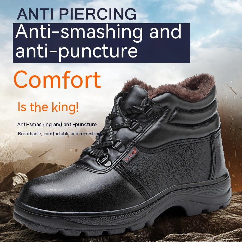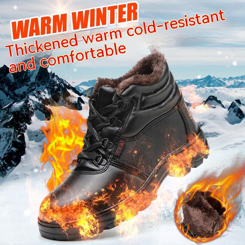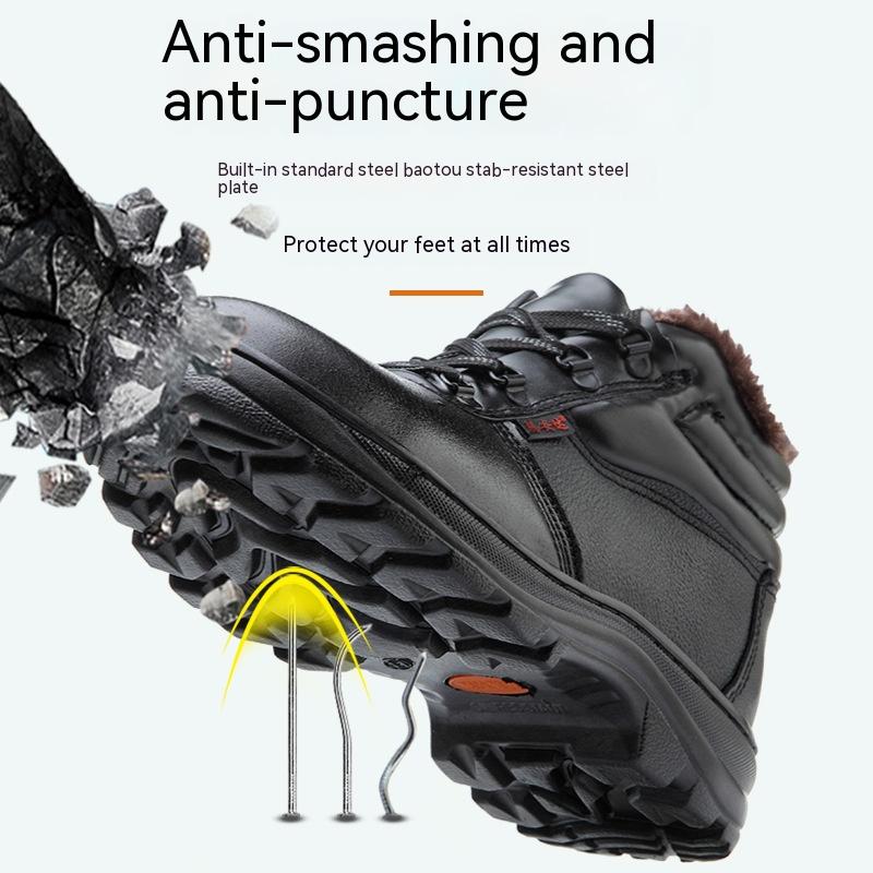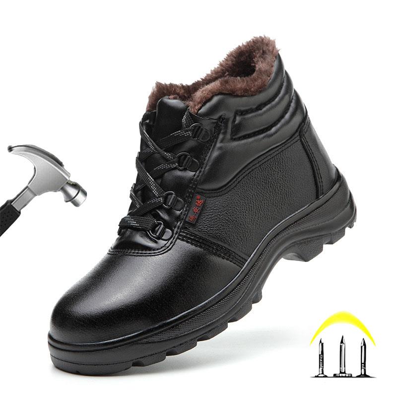 Зимняя теплая меховая защитная обувь для работы, мужская защитная обувь, противоударные и противопрокольные уличные ботинки на платформе