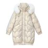 НОВАЯ женская блестящая хлопковая куртка-пуховик, зимнее новое пальто с меховым воротником и капюшоном, женские теплые парки, модное повседневное свободное длинное пальто