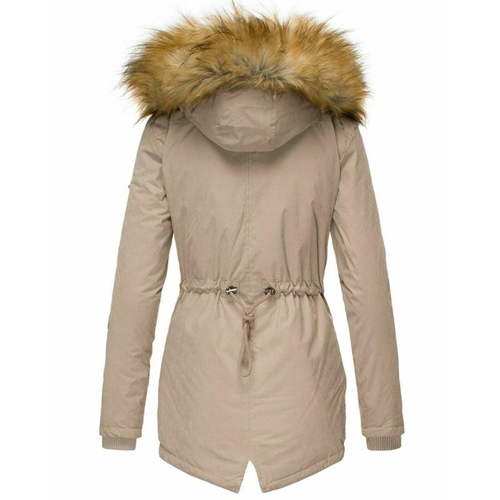 Женская зимняя теплая куртка с меховым воротником на молнии с длинным рукавом и капюшоном
