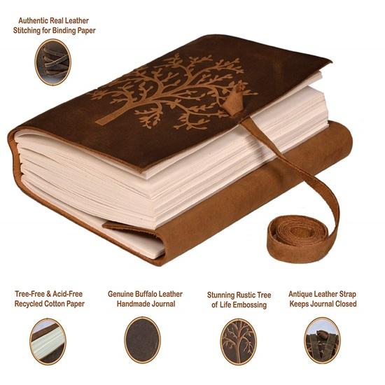 Красиво и эстетично: Дневник ручной работы из кожи — используйте его как альбом для вырезок или эскизов, чтобы рисовать, приклеивайте фотографии из отпуска, чтобы создавать коллажи, практикуйтесь в каллиграфии перьевой ручкой, рисуйте свои мечты кистью и не беспокойтесь о том, что рисунок расплывется сквозь толстые страницы.. Лучший подарок ручной работы для любителя искусства.