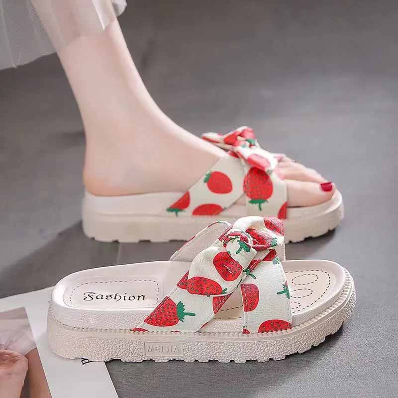 Мода 2024 года. Новые женские повседневные тапочки с принтом ананаса и клубники. Летние пляжные сандалии на толстой платформе с открытым носком и бабочкой — купить товар онлайн с бесплатной доставкой по всему миру!