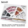 Комплект А: 160 шт. дисков (по 20 шт. в каждом) + 2 шт. держателя + 3 силиконовых бора + 60 шт. полировальных полосок (по 15 шт. в каждом) (Диаметр диска:8мм/12мм)