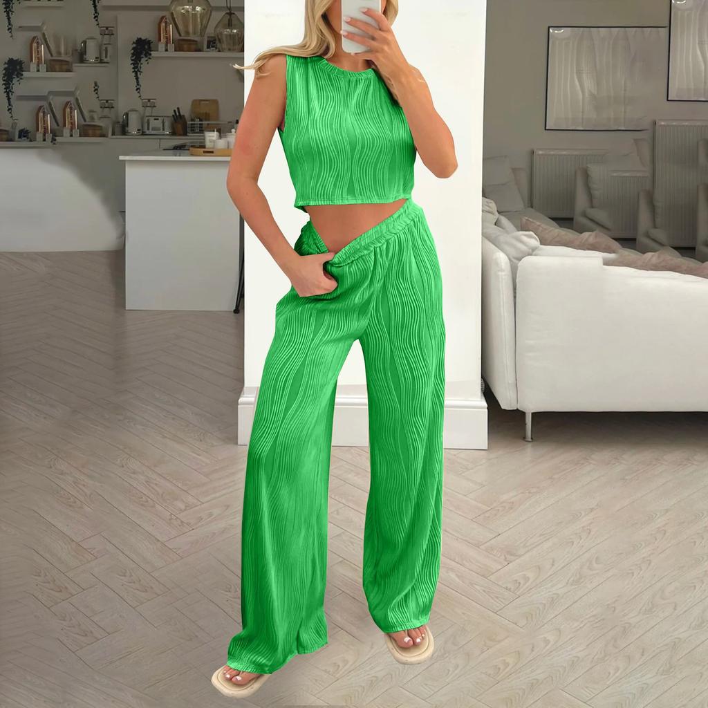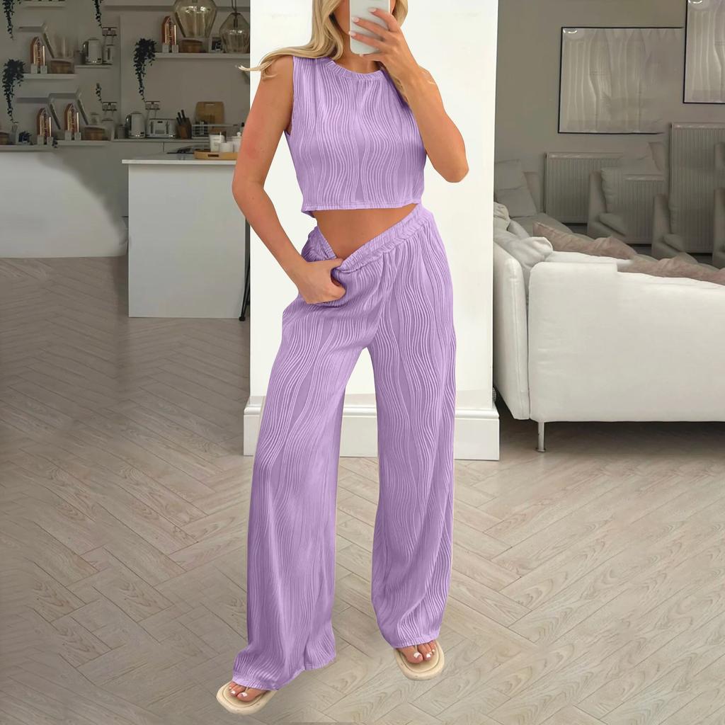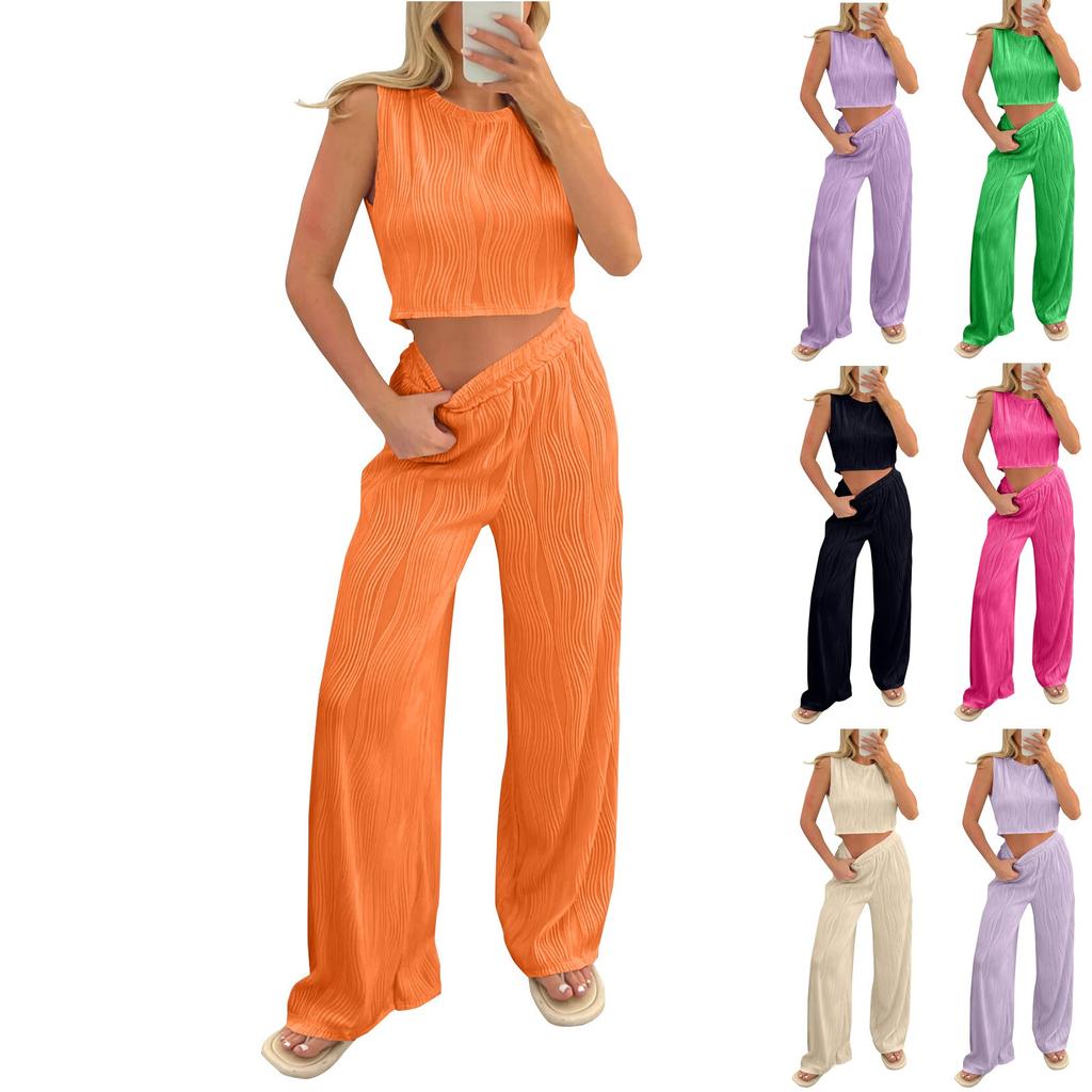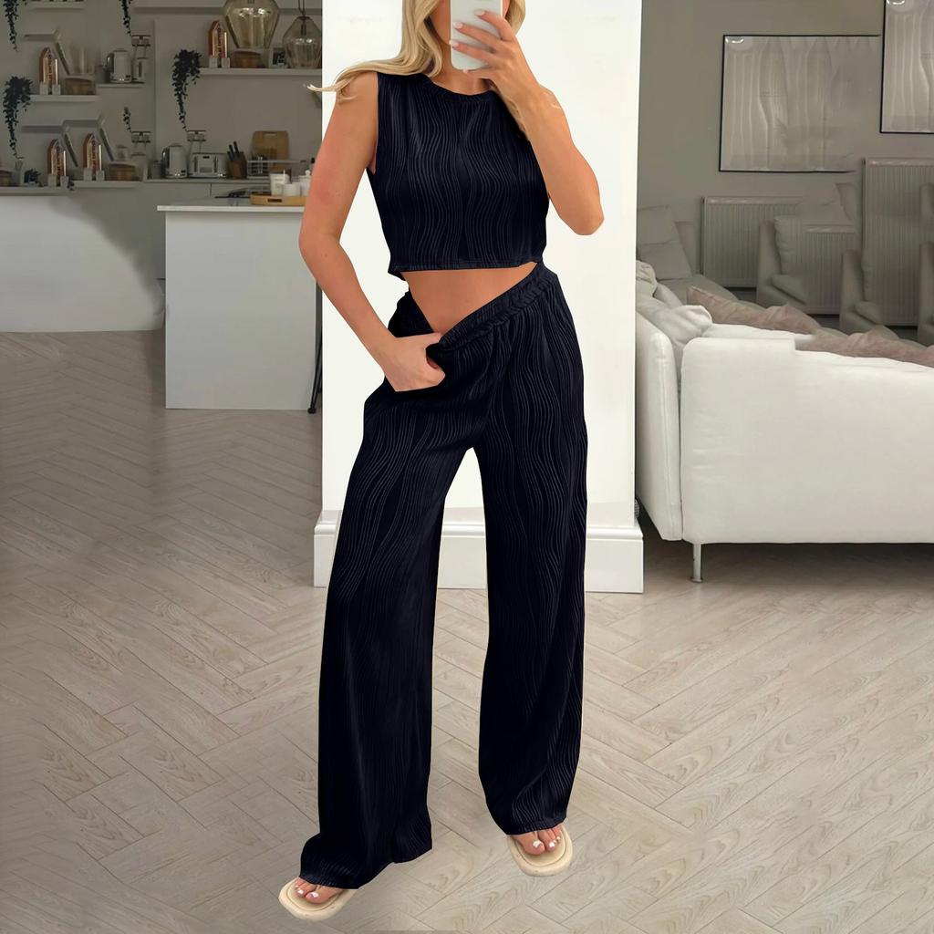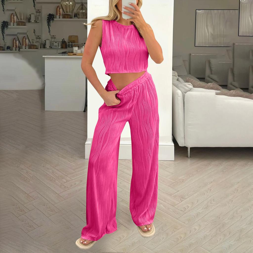 Женская мода, повседневный свободный жилет без рукавов, комплект брюк, женская одежда
