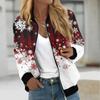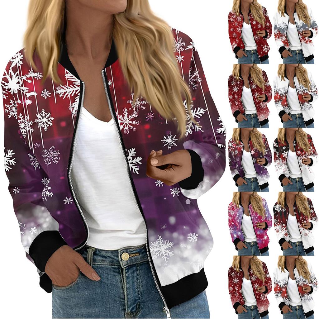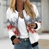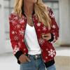 Куртки женские с длинным рукавом, легкие, на молнии, укороченные, модные, с рождественским принтом, верхняя одежда, повседневные, стеганые куртки с карманами