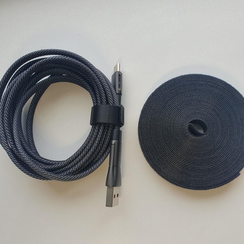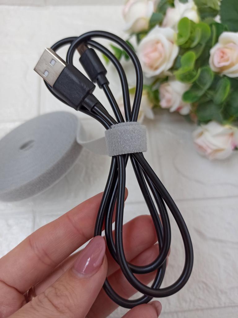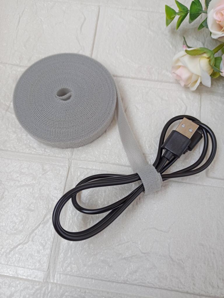 Лента - липучка для намотки проводов. Это отличный органайзер-липучка для кабелей, которая станет полезной для связывания различных бытовых (и не только) проводов. В свете современных требований к структурированным кабельным системам их использование становится очень популярным и востребованным. Данный органайзер изготовлен по самым современным технологиям, поэтому является полностью устойчивыми к различным внешним воздействиям. Стоит отметить, что аксессуар крепко стягивает, благодаря надежной липучке. Органайзер можно отрезать до нужной длины ножницами. Липучка предоставлена на странице продавца в трёх цветах и длина рулона 5 м. Я заказывала серый цвет, все пришло согласно заказу. К продаже данный товар рекомендую.