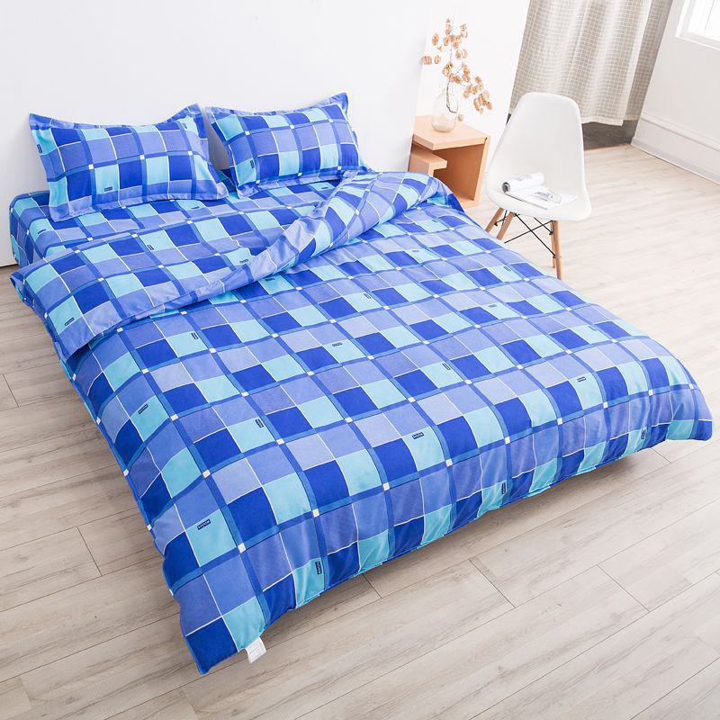 Комплект постельного белья для школьников из трех предметов: Простыня, пододеяльник, наволочка - клетчатый дизайн для общежития