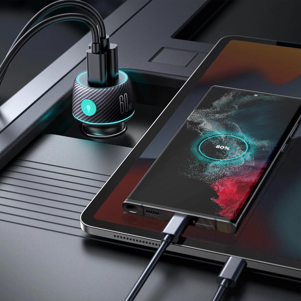 Wyobraź sobie: szybka przerwa w podróży, w drodze na ważne spotkanie, a Twój telefon zbliża się do wyczerpania. W tym momencie wiesz, że liczy się każda minuta. JOYROOM ŁADOWARKA SAMOCHODOWA 60W USB-C USB-A to Twoje idealne rozwiązanie. Kompaktowa, czarna, poręczna i gotowa do użycia w każdej chwili, by przywrócić pełną moc Twojemu urządzeniu. Dzięki technologii szybkiego ładowania Power Delivery, możesz naładować telefon do 50% w zaledwie 30 minut. Bezpieczna, szybka i niezawodna – wybierz ładowarkę, która sprosta Twoim wymaganiom.
