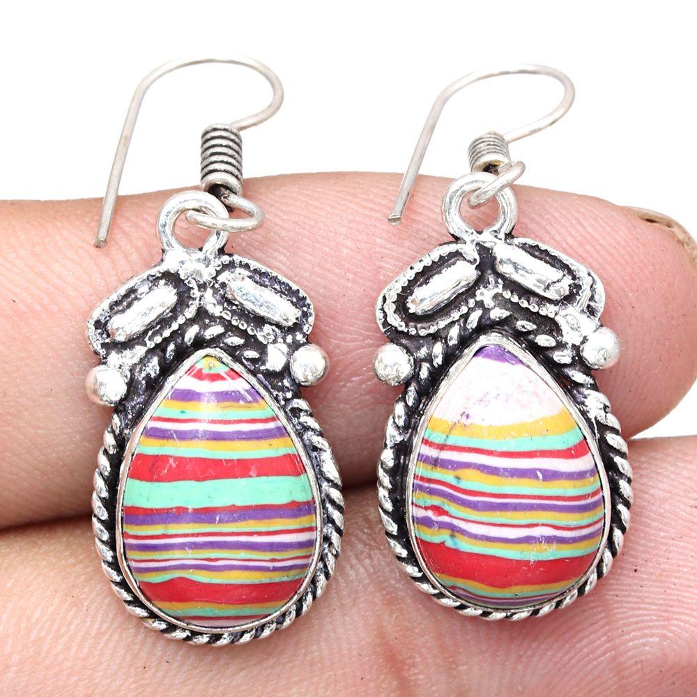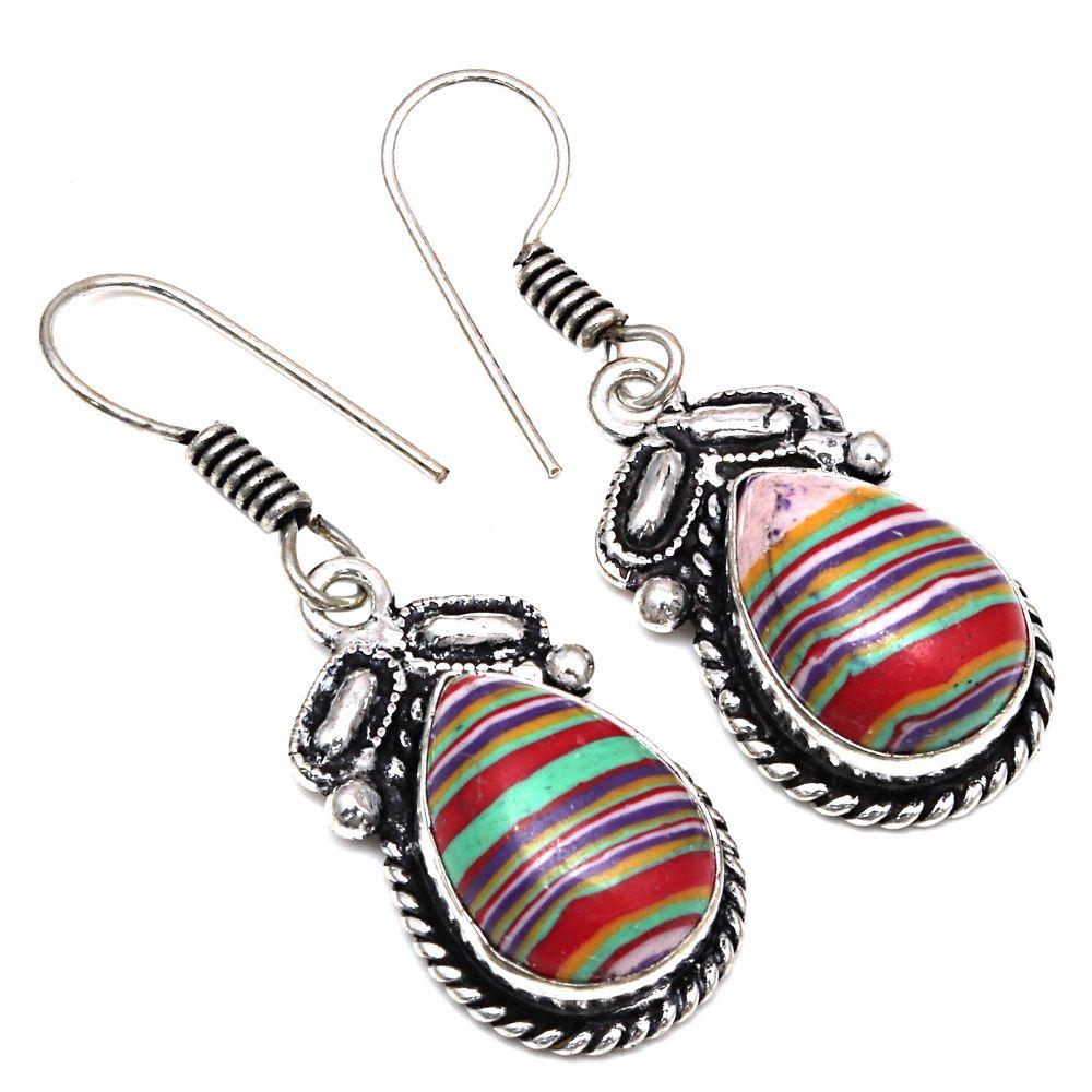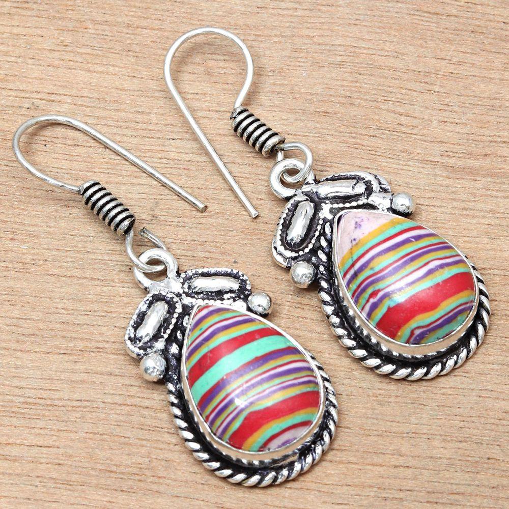 Драгоценный камень радужной калсилики в подарок для нее серебряные серьги 1,5 дюйма