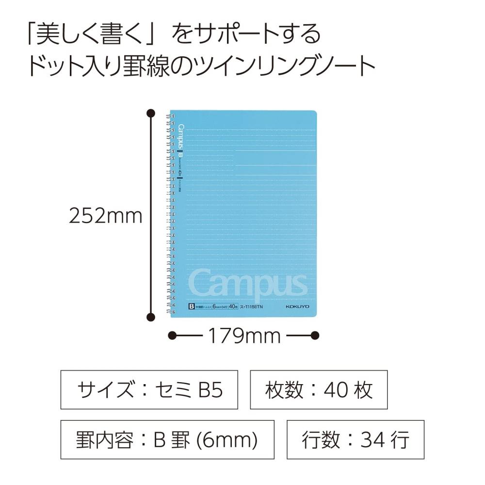 KOKUYO Блокнот Campus Twin Ring B5, в линейку B, 40 листов, S-T115BTN